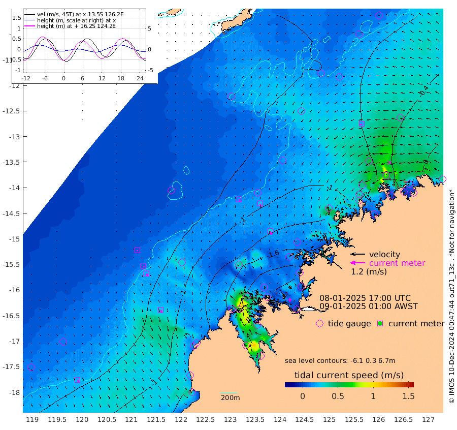 15cm/s 144T +10cm/s rms + 1cm/s 1T. NWSBRW 205m 19cm/s 153T +11cm/s rms + 6cm/s -110T. NWSROW 199m 30cm/s 162T +5cm/s rms + 2cm/s 65T. CAM050 58m 24cm/s 166T +12cm/s rms + 5cm/s 92T. CAM100 99m 5cm/s 177T +7cm/s rms + 1cm/s -85T. KIM400 396m 9cm/s 160T +9cm/s rms + 5cm/s -119T. KIM200 208m 20cm/s 164T +11cm/s rms + 5cm/s -147T. KIM100 99m 26cm/s 157T +8cm/s rms + 3cm/s -103T. KIM050 59m 18cm/s -116T +4cm/s rms + 2cm/s 23T. TIMORS88 91m -89cm Imperieuse Reef -54cm Mermaid Reef -111cm Broome -82cm Cape Baskerville -95cm Red Bluff -71cm Cape Boileau -54cm Scott Reef (WA) -72cm Ashmore Reef -178cm Karrakatta Bay -182cm Sunday Island -229cm Valentine Island -210cm Derby -225cm Port Usborne -181cm Bedford Islands -193cm Yampi Sound (Koolan Island) -228cm Macleay Island -132cm Adele Island -16cm Browse Island -249cm Shale Island -234cm Lizard Island -89cm Hall Point -141cm Degerando Island -119cm White Island -82cm Skua No. 4 Well -73cm Jabiru -99cm Maret Island -81cm Baudin Island -84cm Cape Voltaire (Krait Bay) -75cm Dillon Shoal -62cm Laminaria -85cm Port Warrender -70cm Troughton Island -83cm Cassini Island -60cm West Holothuria Reef Offshore -50cm Jar Island -80cm Lynher Bank -84cm Heywood Shoal -77cm Pee Shoal -36cm Van Cloon Shoal -12cm Carronade Island -18cm Guy Point -5cm Napier Broome Bay 31cm Lesueur Island