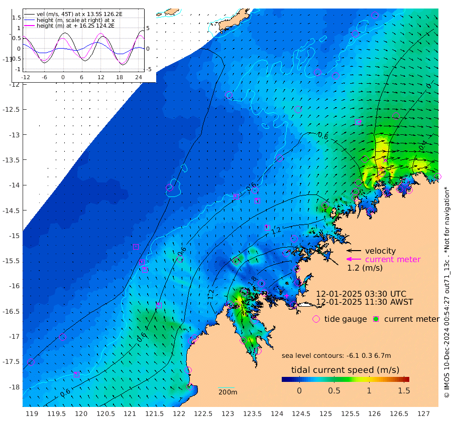 15cm/s -39T +10cm/s rms + 1cm/s 1T. NWSBRW 205m 20cm/s -32T +11cm/s rms + 6cm/s -110T. NWSROW 199m 28cm/s -18T +5cm/s rms + 2cm/s 65T. CAM050 58m 22cm/s -18T +12cm/s rms + 5cm/s 92T. CAM100 99m 4cm/s -19T +7cm/s rms + 1cm/s -85T. KIM400 396m 12cm/s -29T +9cm/s rms + 5cm/s -119T. KIM200 208m 21cm/s -26T +11cm/s rms + 5cm/s -147T. KIM100 99m 24cm/s -24T +8cm/s rms + 3cm/s -103T. KIM050 59m 30cm/s 70T +4cm/s rms + 2cm/s 23T. TIMORS88 91m 61cm Imperieuse Reef 24cm Mermaid Reef 95cm Broome 70cm Cape Baskerville 127cm Red Bluff 60cm Cape Boileau 23cm Scott Reef (WA) 40cm Ashmore Reef 171cm Karrakatta Bay 167cm Sunday Island 180cm Valentine Island 157cm Derby 176cm Port Usborne 176cm Bedford Islands 167cm Yampi Sound (Koolan Island) 193cm Macleay Island 110cm Adele Island -12cm Browse Island 223cm Shale Island 179cm Lizard Island 209cm Hall Point 129cm Degerando Island 86cm White Island 44cm Skua No. 4 Well 57cm Jabiru 73cm Maret Island 56cm Baudin Island 46cm Cape Voltaire (Krait Bay) 36cm Dillon Shoal 20cm Laminaria 45cm Port Warrender 7cm Troughton Island 49cm Cassini Island 18cm West Holothuria Reef Offshore -3cm Jar Island 49cm Lynher Bank 50cm Heywood Shoal 39cm Pee Shoal -7cm Van Cloon Shoal -47cm Carronade Island -47cm Guy Point -49cm Napier Broome Bay -113cm Lesueur Island