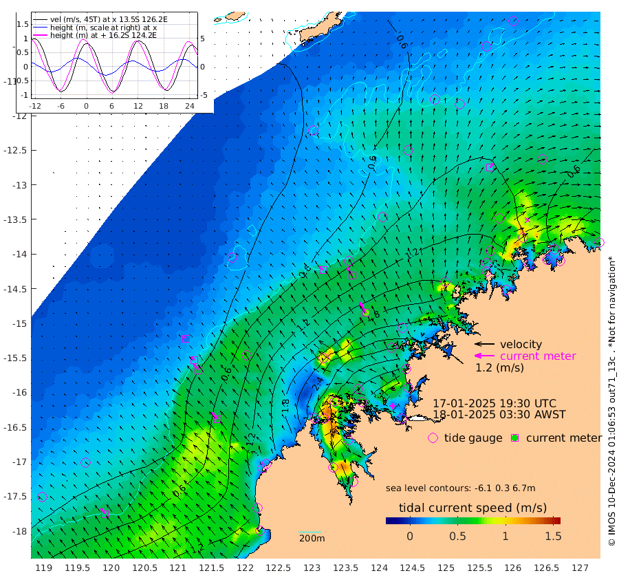 34cm/s -51T +10cm/s rms + 1cm/s 1T. NWSBRW 205m 41cm/s -36T +11cm/s rms + 6cm/s -110T. NWSROW 199m 75cm/s -31T +5cm/s rms + 2cm/s 65T. CAM050 58m 60cm/s -31T +12cm/s rms + 5cm/s 92T. CAM100 99m 13cm/s -42T +7cm/s rms + 1cm/s -85T. KIM400 396m 26cm/s -44T +9cm/s rms + 5cm/s -119T. KIM200 208m 50cm/s -38T +11cm/s rms + 5cm/s -147T. KIM100 99m 56cm/s -43T +8cm/s rms + 3cm/s -103T. KIM050 59m 31cm/s 33T +4cm/s rms + 2cm/s 23T. TIMORS88 91m 125cm Imperieuse Reef 17cm Mermaid Reef 113cm Broome 73cm Cape Baskerville 138cm Red Bluff 90cm Cape Boileau 20cm Scott Reef (WA) 49cm Ashmore Reef 264cm Karrakatta Bay 282cm Sunday Island 374cm Valentine Island 357cm Derby 356cm Port Usborne 244cm Bedford Islands 273cm Yampi Sound (Koolan Island) 271cm Macleay Island 139cm Adele Island -31cm Browse Island 372cm Shale Island 359cm Lizard Island 166cm Hall Point 197cm Degerando Island 154cm White Island 46cm Skua No. 4 Well 35cm Jabiru 89cm Maret Island 82cm Baudin Island 86cm Cape Voltaire (Krait Bay) 66cm Dillon Shoal -9cm Laminaria 124cm Port Warrender 64cm Troughton Island 70cm Cassini Island 49cm West Holothuria Reef Offshore 65cm Jar Island 73cm Lynher Bank 63cm Heywood Shoal 51cm Pee Shoal 42cm Van Cloon Shoal 15cm Carronade Island 16cm Guy Point 20cm Napier Broome Bay -29cm Lesueur Island