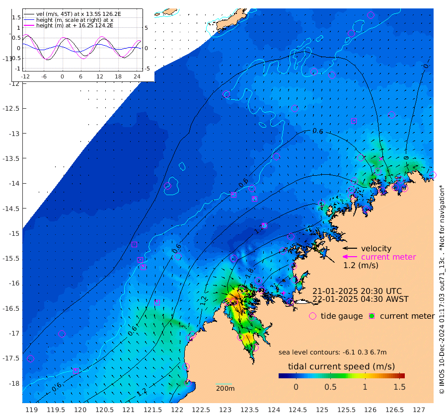 13cm/s -45T +10cm/s rms + 1cm/s 1T. NWSBRW 205m 17cm/s -27T +11cm/s rms + 6cm/s -110T. NWSROW 199m 21cm/s -35T +5cm/s rms + 2cm/s 65T. CAM050 58m 18cm/s -29T +12cm/s rms + 5cm/s 92T. CAM100 99m 4cm/s -10T +7cm/s rms + 1cm/s -85T. KIM400 396m 8cm/s -25T +9cm/s rms + 5cm/s -119T. KIM200 208m 17cm/s -26T +11cm/s rms + 5cm/s -147T. KIM100 99m 23cm/s -15T +8cm/s rms + 3cm/s -103T. KIM050 59m 10cm/s 21T +4cm/s rms + 2cm/s 23T. TIMORS88 91m 59cm Imperieuse Reef 31cm Mermaid Reef 129cm Broome 83cm Cape Baskerville 135cm Red Bluff 87cm Cape Boileau 25cm Scott Reef (WA) 36cm Ashmore Reef 164cm Karrakatta Bay 152cm Sunday Island 138cm Valentine Island 83cm Derby 130cm Port Usborne 154cm Bedford Islands 202cm Yampi Sound (Koolan Island) 204cm Macleay Island 113cm Adele Island 22cm Browse Island 261cm Shale Island 274cm Lizard Island 158cm Hall Point 149cm Degerando Island 146cm White Island 36cm Skua No. 4 Well 8cm Jabiru 89cm Maret Island 82cm Baudin Island 79cm Cape Voltaire (Krait Bay) 24cm Dillon Shoal 0cm Laminaria 99cm Port Warrender 30cm Troughton Island 62cm Cassini Island 41cm West Holothuria Reef Offshore 43cm Jar Island 64cm Lynher Bank 64cm Heywood Shoal 24cm Pee Shoal 7cm Van Cloon Shoal -2cm Carronade Island -3cm Guy Point -1cm Napier Broome Bay -70cm Lesueur Island