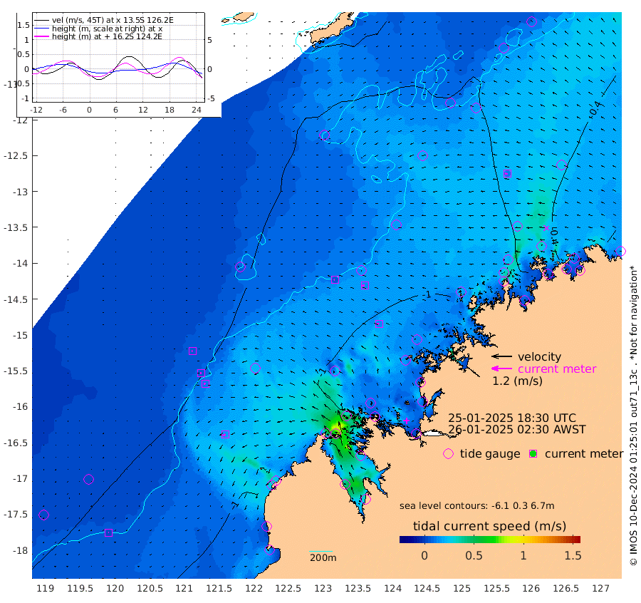 5cm/s -99T +10cm/s rms + 1cm/s 1T. NWSBRW 205m 3cm/s -108T +11cm/s rms + 6cm/s -110T. NWSROW 199m 14cm/s -80T +5cm/s rms + 2cm/s 65T. CAM050 58m 14cm/s -84T +12cm/s rms + 5cm/s 92T. CAM100 99m 4cm/s -99T +7cm/s rms + 1cm/s -85T. KIM400 396m 6cm/s -93T +9cm/s rms + 5cm/s -119T. KIM200 208m 11cm/s -95T +11cm/s rms + 5cm/s -147T. KIM100 99m 16cm/s -122T +8cm/s rms + 3cm/s -103T. KIM050 59m 12cm/s -86T +4cm/s rms + 2cm/s 23T. TIMORS88 91m -46cm Imperieuse Reef -66cm Mermaid Reef -101cm Broome -88cm Cape Baskerville -98cm Red Bluff -72cm Cape Boileau -62cm Scott Reef (WA) -75cm Ashmore Reef -102cm Karrakatta Bay -92cm Sunday Island -85cm Valentine Island -47cm Derby -66cm Port Usborne -100cm Bedford Islands -115cm Yampi Sound (Koolan Island) -157cm Macleay Island -110cm Adele Island -51cm Browse Island -128cm Shale Island -118cm Lizard Island -190cm Hall Point -93cm Degerando Island -99cm White Island -80cm Skua No. 4 Well -99cm Jabiru -98cm Maret Island -92cm Baudin Island -79cm Cape Voltaire (Krait Bay) -70cm Dillon Shoal -81cm Laminaria -81cm Port Warrender -74cm Troughton Island -87cm Cassini Island -78cm West Holothuria Reef Offshore -56cm Jar Island -71cm Lynher Bank -86cm Heywood Shoal -78cm Pee Shoal -50cm Van Cloon Shoal -38cm Carronade Island -45cm Guy Point -35cm Napier Broome Bay -8cm Lesueur Island