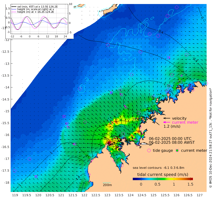 16cm/s -52T +10cm/s rms + 1cm/s 1T. NWSBRW 205m 18cm/s -54T +11cm/s rms + 6cm/s -110T. NWSROW 199m 54cm/s -35T +5cm/s rms + 2cm/s 65T. CAM050 58m 38cm/s -41T +12cm/s rms + 5cm/s 92T. CAM100 99m 8cm/s -72T +7cm/s rms + 1cm/s -85T. KIM400 396m 18cm/s -70T +9cm/s rms + 5cm/s -119T. KIM200 208m 31cm/s -63T +11cm/s rms + 5cm/s -147T. KIM100 99m 40cm/s -90T +8cm/s rms + 3cm/s -103T. KIM050 59m 18cm/s 77T +4cm/s rms + 2cm/s 23T. TIMORS88 91m -16cm Imperieuse Reef -88cm Mermaid Reef -190cm Broome -141cm Cape Baskerville -115cm Red Bluff -140cm Cape Boileau -76cm Scott Reef (WA) -72cm Ashmore Reef -33cm Karrakatta Bay -5cm Sunday Island 213cm Valentine Island 289cm Derby 172cm Port Usborne -86cm Bedford Islands -124cm Yampi Sound (Koolan Island) -105cm Macleay Island -107cm Adele Island -141cm Browse Island -103cm Shale Island -125cm Lizard Island -109cm Hall Point -148cm Degerando Island -168cm White Island -73cm Skua No. 4 Well -32cm Jabiru -153cm Maret Island -148cm Baudin Island -154cm Cape Voltaire (Krait Bay) -28cm Dillon Shoal -46cm Laminaria -170cm Port Warrender -108cm Troughton Island -139cm Cassini Island -110cm West Holothuria Reef Offshore -116cm Jar Island -109cm Lynher Bank -120cm Heywood Shoal -54cm Pee Shoal -65cm Van Cloon Shoal -110cm Carronade Island -108cm Guy Point -113cm Napier Broome Bay -84cm Lesueur Island