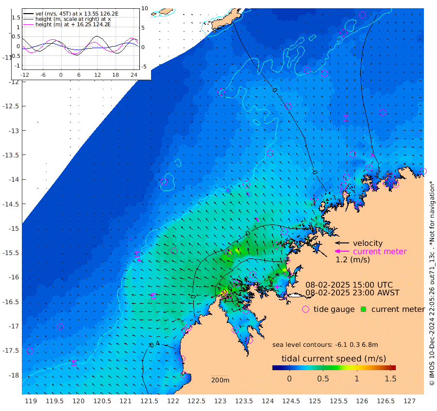 14cm/s -61T +10cm/s rms + 1cm/s 1T. NWSBRW 205m 17cm/s -45T +11cm/s rms + 6cm/s -110T. NWSROW 199m 34cm/s -39T +5cm/s rms + 2cm/s 65T. CAM050 58m 26cm/s -43T +12cm/s rms + 5cm/s 92T. CAM100 99m 7cm/s -66T +7cm/s rms + 1cm/s -85T. KIM400 396m 14cm/s -59T +9cm/s rms + 5cm/s -119T. KIM200 208m 25cm/s -50T +11cm/s rms + 5cm/s -147T. KIM100 99m 25cm/s -74T +8cm/s rms + 3cm/s -103T. KIM050 59m 11cm/s 0T +4cm/s rms + 2cm/s 23T. TIMORS88 91m 28cm Imperieuse Reef -34cm Mermaid Reef -48cm Broome -32cm Cape Baskerville -17cm Red Bluff -22cm Cape Boileau -24cm Scott Reef (WA) -4cm Ashmore Reef 33cm Karrakatta Bay 29cm Sunday Island 154cm Valentine Island 172cm Derby 123cm Port Usborne 6cm Bedford Islands -7cm Yampi Sound (Koolan Island) 11cm Macleay Island -8cm Adele Island -34cm Browse Island 13cm Shale Island 0cm Lizard Island 19cm Hall Point -10cm Degerando Island -39cm White Island -5cm Skua No. 4 Well 4cm Jabiru -17cm Maret Island -25cm Baudin Island -18cm Cape Voltaire (Krait Bay) 13cm Dillon Shoal -35cm Laminaria -7cm Port Warrender 19cm Troughton Island -3cm Cassini Island -8cm West Holothuria Reef Offshore 4cm Jar Island -32cm Lynher Bank -32cm Heywood Shoal 12cm Pee Shoal 18cm Van Cloon Shoal 6cm Carronade Island 0cm Guy Point 12cm Napier Broome Bay 26cm Lesueur Island