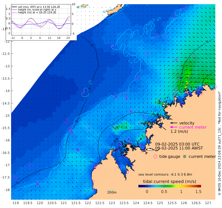7cm/s -43T +10cm/s rms + 1cm/s 1T. NWSBRW 205m 11cm/s -39T +11cm/s rms + 6cm/s -110T. NWSROW 199m 18cm/s -12T +5cm/s rms + 2cm/s 65T. CAM050 58m 13cm/s -18T +12cm/s rms + 5cm/s 92T. CAM100 99m 3cm/s -35T +7cm/s rms + 1cm/s -85T. KIM400 396m 8cm/s -41T +9cm/s rms + 5cm/s -119T. KIM200 208m 12cm/s -36T +11cm/s rms + 5cm/s -147T. KIM100 99m 11cm/s -40T +8cm/s rms + 3cm/s -103T. KIM050 59m 27cm/s 77T +4cm/s rms + 2cm/s 23T. TIMORS88 91m 23cm Imperieuse Reef -2cm Mermaid Reef 14cm Broome 17cm Cape Baskerville 55cm Red Bluff 8cm Cape Boileau 2cm Scott Reef (WA) 12cm Ashmore Reef 74cm Karrakatta Bay 75cm Sunday Island 109cm Valentine Island 108cm Derby 97cm Port Usborne 74cm Bedford Islands 47cm Yampi Sound (Koolan Island) 71cm Macleay Island 40cm Adele Island -30cm Browse Island 72cm Shale Island 30cm Lizard Island 88cm Hall Point 36cm Degerando Island 1cm White Island 15cm Skua No. 4 Well 29cm Jabiru 12cm Maret Island 2cm Baudin Island -6cm Cape Voltaire (Krait Bay) 18cm Dillon Shoal 10cm Laminaria -13cm Port Warrender -16cm Troughton Island 7cm Cassini Island -8cm West Holothuria Reef Offshore -29cm Jar Island 3cm Lynher Bank 8cm Heywood Shoal 19cm Pee Shoal -13cm Van Cloon Shoal -48cm Carronade Island -48cm Guy Point -48cm Napier Broome Bay -78cm Lesueur Island