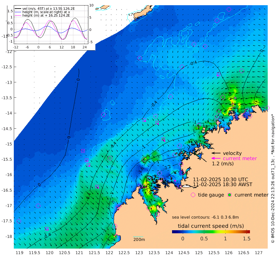 26cm/s 131T +10cm/s rms + 1cm/s 1T. NWSBRW 205m 26cm/s 148T +11cm/s rms + 6cm/s -110T. NWSROW 199m 41cm/s 145T +5cm/s rms + 2cm/s 65T. CAM050 58m 34cm/s 145T +12cm/s rms + 5cm/s 92T. CAM100 99m 7cm/s 140T +7cm/s rms + 1cm/s -85T. KIM400 396m 16cm/s 142T +9cm/s rms + 5cm/s -119T. KIM200 208m 31cm/s 148T +11cm/s rms + 5cm/s -147T. KIM100 99m 34cm/s 140T +8cm/s rms + 3cm/s -103T. KIM050 59m 22cm/s -136T +4cm/s rms + 2cm/s 23T. TIMORS88 91m -71cm Imperieuse Reef -4cm Mermaid Reef -108cm Broome -68cm Cape Baskerville -121cm Red Bluff -66cm Cape Boileau -7cm Scott Reef (WA) -25cm Ashmore Reef -185cm Karrakatta Bay -175cm Sunday Island -214cm Valentine Island -177cm Derby -209cm Port Usborne -197cm Bedford Islands -202cm Yampi Sound (Koolan Island) -221cm Macleay Island -114cm Adele Island 6cm Browse Island -273cm Shale Island -243cm Lizard Island -154cm Hall Point -160cm Degerando Island -108cm White Island -28cm Skua No. 4 Well -6cm Jabiru -80cm Maret Island -54cm Baudin Island -61cm Cape Voltaire (Krait Bay) -16cm Dillon Shoal 31cm Laminaria -77cm Port Warrender -17cm Troughton Island -55cm Cassini Island -13cm West Holothuria Reef Offshore -10cm Jar Island -46cm Lynher Bank -38cm Heywood Shoal -23cm Pee Shoal 14cm Van Cloon Shoal 40cm Carronade Island 46cm Guy Point 45cm Napier Broome Bay 111cm Lesueur Island