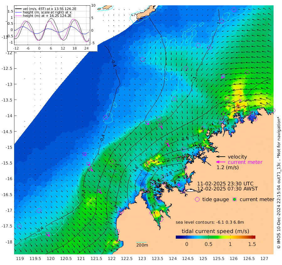 32cm/s 132T +10cm/s rms + 1cm/s 1T. NWSBRW 205m 39cm/s 148T +11cm/s rms + 6cm/s -110T. NWSROW 199m 67cm/s 150T +5cm/s rms + 2cm/s 65T. CAM050 58m 50cm/s 152T +12cm/s rms + 5cm/s 92T. CAM100 99m 11cm/s 140T +7cm/s rms + 1cm/s -85T. KIM400 396m 25cm/s 136T +9cm/s rms + 5cm/s -119T. KIM200 208m 47cm/s 142T +11cm/s rms + 5cm/s -147T. KIM100 99m 48cm/s 139T +8cm/s rms + 3cm/s -103T. KIM050 59m 36cm/s -132T +4cm/s rms + 2cm/s 23T. TIMORS88 91m -137cm Imperieuse Reef -38cm Mermaid Reef -111cm Broome -85cm Cape Baskerville -155cm Red Bluff -98cm Cape Boileau -40cm Scott Reef (WA) -83cm Ashmore Reef -251cm Karrakatta Bay -265cm Sunday Island -341cm Valentine Island -332cm Derby -322cm Port Usborne -237cm Bedford Islands -246cm Yampi Sound (Koolan Island) -229cm Macleay Island -141cm Adele Island 24cm Browse Island -328cm Shale Island -308cm Lizard Island -153cm Hall Point -193cm Degerando Island -137cm White Island -78cm Skua No. 4 Well -74cm Jabiru -110cm Maret Island -99cm Baudin Island -107cm Cape Voltaire (Krait Bay) -97cm Dillon Shoal -34cm Laminaria -139cm Port Warrender -107cm Troughton Island -107cm Cassini Island -81cm West Holothuria Reef Offshore -97cm Jar Island -84cm Lynher Bank -89cm Heywood Shoal -95cm Pee Shoal -90cm Van Cloon Shoal -61cm Carronade Island -59cm Guy Point -73cm Napier Broome Bay -45cm Lesueur Island