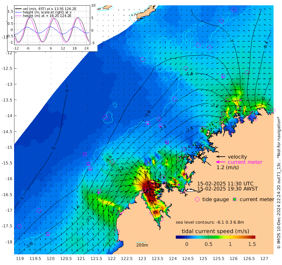 24cm/s 149T +10cm/s rms + 1cm/s 1T. NWSBRW 205m 18cm/s 168T +11cm/s rms + 6cm/s -110T. NWSROW 199m 12cm/s -157T +5cm/s rms + 2cm/s 65T. CAM050 58m 16cm/s -169T +12cm/s rms + 5cm/s 92T. CAM100 99m 7cm/s -160T +7cm/s rms + 1cm/s -85T. KIM400 396m 11cm/s -156T +9cm/s rms + 5cm/s -119T. KIM200 208m 22cm/s -162T +11cm/s rms + 5cm/s -147T. KIM100 99m 40cm/s -168T +8cm/s rms + 3cm/s -103T. KIM050 59m 21cm/s -133T +4cm/s rms + 2cm/s 23T. TIMORS88 91m -129cm Imperieuse Reef -119cm Mermaid Reef -339cm Broome -242cm Cape Baskerville -299cm Red Bluff -238cm Cape Boileau -108cm Scott Reef (WA) -131cm Ashmore Reef -325cm Karrakatta Bay -306cm Sunday Island -143cm Valentine Island -45cm Derby -177cm Port Usborne -363cm Bedford Islands -426cm Yampi Sound (Koolan Island) -448cm Macleay Island -288cm Adele Island -117cm Browse Island -508cm Shale Island -463cm Lizard Island -392cm Hall Point -366cm Degerando Island -338cm White Island -135cm Skua No. 4 Well -95cm Jabiru -263cm Maret Island -242cm Baudin Island -238cm Cape Voltaire (Krait Bay) -103cm Dillon Shoal -59cm Laminaria -273cm Port Warrender -139cm Troughton Island -215cm Cassini Island -152cm West Holothuria Reef Offshore -140cm Jar Island -189cm Lynher Bank -204cm Heywood Shoal -109cm Pee Shoal -67cm Van Cloon Shoal -64cm Carronade Island -68cm Guy Point -60cm Napier Broome Bay 61cm Lesueur Island
