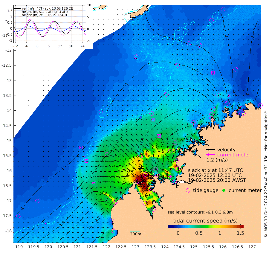 7cm/s -78T +10cm/s rms + 1cm/s 1T. NWSBRW 205m 9cm/s -79T +11cm/s rms + 6cm/s -110T. NWSROW 199m 37cm/s -45T +5cm/s rms + 2cm/s 65T. CAM050 58m 26cm/s -58T +12cm/s rms + 5cm/s 92T. CAM100 99m 7cm/s -100T +7cm/s rms + 1cm/s -85T. KIM400 396m 14cm/s -90T +9cm/s rms + 5cm/s -119T. KIM200 208m 23cm/s -81T +11cm/s rms + 5cm/s -147T. KIM100 99m 39cm/s -116T +8cm/s rms + 3cm/s -103T. KIM050 59m 7cm/s -82T +4cm/s rms + 2cm/s 23T. TIMORS88 91m -58cm Imperieuse Reef -107cm Mermaid Reef -268cm Broome -199cm Cape Baskerville -230cm Red Bluff -186cm Cape Boileau -91cm Scott Reef (WA) -100cm Ashmore Reef -171cm Karrakatta Bay -124cm Sunday Island 93cm Valentine Island 199cm Derby 60cm Port Usborne -206cm Bedford Islands -256cm Yampi Sound (Koolan Island) -248cm Macleay Island -185cm Adele Island -124cm Browse Island -287cm Shale Island -261cm Lizard Island -230cm Hall Point -240cm Degerando Island -238cm White Island -107cm Skua No. 4 Well -56cm Jabiru -202cm Maret Island -194cm Baudin Island -185cm Cape Voltaire (Krait Bay) -58cm Dillon Shoal -65cm Laminaria -190cm Port Warrender -100cm Troughton Island -173cm Cassini Island -118cm West Holothuria Reef Offshore -109cm Jar Island -138cm Lynher Bank -170cm Heywood Shoal -76cm Pee Shoal -46cm Van Cloon Shoal -58cm Carronade Island -60cm Guy Point -55cm Napier Broome Bay 33cm Lesueur Island