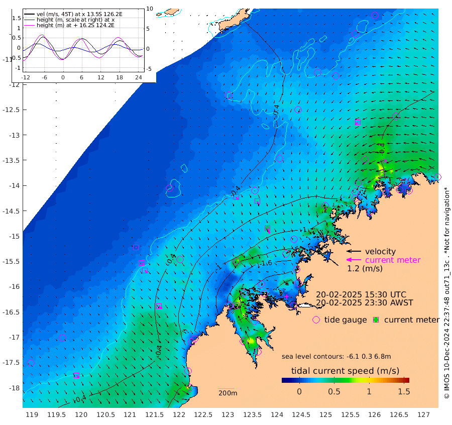 21cm/s 138T +10cm/s rms + 1cm/s 1T. NWSBRW 205m 23cm/s 145T +11cm/s rms + 6cm/s -110T. NWSROW 199m 46cm/s 153T +5cm/s rms + 2cm/s 65T. CAM050 58m 34cm/s 155T +12cm/s rms + 5cm/s 92T. CAM100 99m 5cm/s 149T +7cm/s rms + 1cm/s -85T. KIM400 396m 13cm/s 136T +9cm/s rms + 5cm/s -119T. KIM200 208m 26cm/s 144T +11cm/s rms + 5cm/s -147T. KIM100 99m 32cm/s 131T +8cm/s rms + 3cm/s -103T. KIM050 59m 22cm/s -120T +4cm/s rms + 2cm/s 23T. TIMORS88 91m -70cm Imperieuse Reef -17cm Mermaid Reef -35cm Broome -28cm Cape Baskerville -66cm Red Bluff -16cm Cape Boileau -13cm Scott Reef (WA) -36cm Ashmore Reef -149cm Karrakatta Bay -159cm Sunday Island -274cm Valentine Island -264cm Derby -236cm Port Usborne -117cm Bedford Islands -139cm Yampi Sound (Koolan Island) -143cm Macleay Island -71cm Adele Island 38cm Browse Island -200cm Shale Island -189cm Lizard Island -152cm Hall Point -77cm Degerando Island -73cm White Island -30cm Skua No. 4 Well -60cm Jabiru -33cm Maret Island -42cm Baudin Island -25cm Cape Voltaire (Krait Bay) -48cm Dillon Shoal -30cm Laminaria -42cm Port Warrender -34cm Troughton Island -24cm Cassini Island -28cm West Holothuria Reef Offshore -30cm Jar Island -34cm Lynher Bank -26cm Heywood Shoal -36cm Pee Shoal -24cm Van Cloon Shoal 1cm Carronade Island -3cm Guy Point 8cm Napier Broome Bay 12cm Lesueur Island