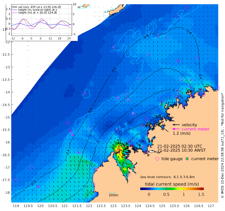 19cm/s 135T +10cm/s rms + 1cm/s 1T. NWSBRW 205m 18cm/s 152T +11cm/s rms + 6cm/s -110T. NWSROW 199m 29cm/s 143T +5cm/s rms + 2cm/s 65T. CAM050 58m 23cm/s 149T +12cm/s rms + 5cm/s 92T. CAM100 99m 5cm/s 153T +7cm/s rms + 1cm/s -85T. KIM400 396m 9cm/s 144T +9cm/s rms + 5cm/s -119T. KIM200 208m 22cm/s 149T +11cm/s rms + 5cm/s -147T. KIM100 99m 25cm/s 146T +8cm/s rms + 3cm/s -103T. KIM050 59m 11cm/s 150T +4cm/s rms + 2cm/s 23T. TIMORS88 91m -66cm Imperieuse Reef -22cm Mermaid Reef -97cm Broome -51cm Cape Baskerville -85cm Red Bluff -59cm Cape Boileau -16cm Scott Reef (WA) -39cm Ashmore Reef -147cm Karrakatta Bay -138cm Sunday Island -135cm Valentine Island -125cm Derby -154cm Port Usborne -123cm Bedford Islands -177cm Yampi Sound (Koolan Island) -170cm Macleay Island -90cm Adele Island -16cm Browse Island -237cm Shale Island -246cm Lizard Island -135cm Hall Point -125cm Degerando Island -123cm White Island -31cm Skua No. 4 Well -18cm Jabiru -76cm Maret Island -73cm Baudin Island -72cm Cape Voltaire (Krait Bay) -29cm Dillon Shoal 4cm Laminaria -84cm Port Warrender -48cm Troughton Island -60cm Cassini Island -42cm West Holothuria Reef Offshore -60cm Jar Island -52cm Lynher Bank -43cm Heywood Shoal -24cm Pee Shoal -24cm Van Cloon Shoal -24cm Carronade Island -17cm Guy Point -26cm Napier Broome Bay 10cm Lesueur Island