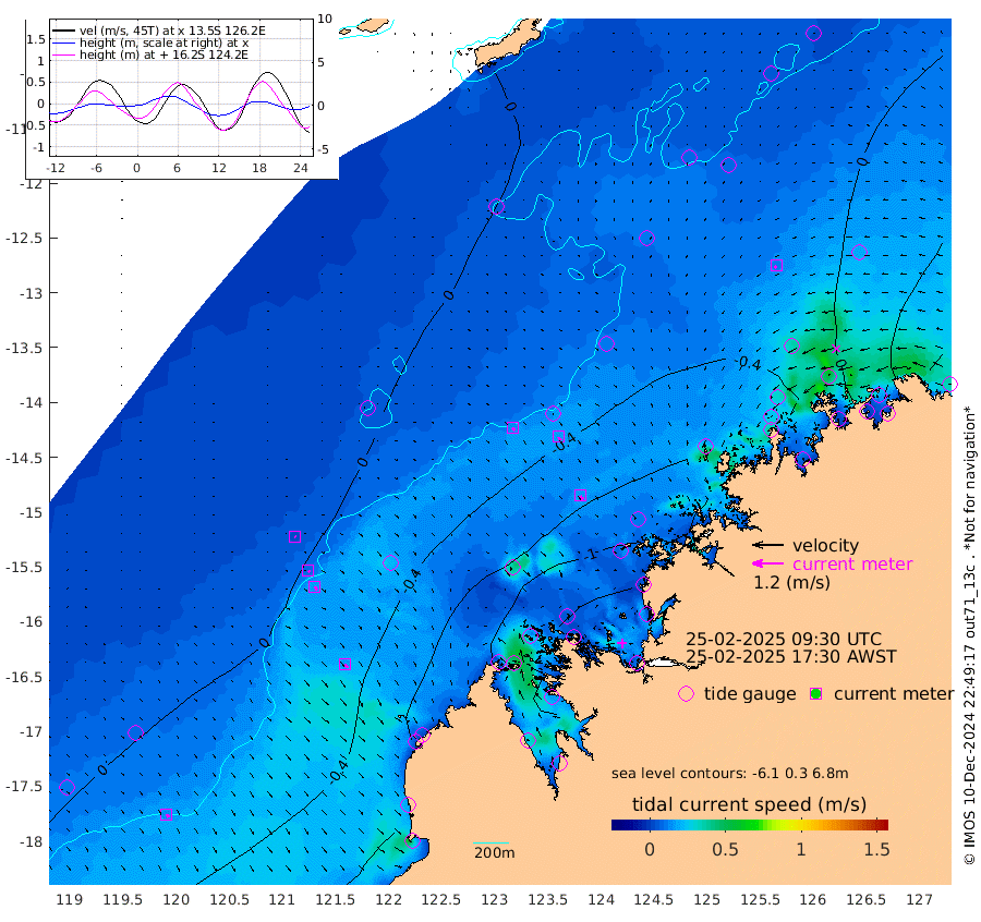 13cm/s 131T +10cm/s rms + 1cm/s 1T. NWSBRW 205m 13cm/s 148T +11cm/s rms + 6cm/s -110T. NWSROW 199m 18cm/s 144T +5cm/s rms + 2cm/s 65T. CAM050 58m 16cm/s 143T +12cm/s rms + 5cm/s 92T. CAM100 99m 4cm/s 140T +7cm/s rms + 1cm/s -85T. KIM400 396m 8cm/s 144T +9cm/s rms + 5cm/s -119T. KIM200 208m 16cm/s 149T +11cm/s rms + 5cm/s -147T. KIM100 99m 17cm/s 145T +8cm/s rms + 3cm/s -103T. KIM050 59m 12cm/s -131T +4cm/s rms + 2cm/s 23T. TIMORS88 91m -25cm Imperieuse Reef 4cm Mermaid Reef -69cm Broome -47cm Cape Baskerville -98cm Red Bluff -42cm Cape Boileau 5cm Scott Reef (WA) -8cm Ashmore Reef -113cm Karrakatta Bay -102cm Sunday Island -101cm Valentine Island -75cm Derby -95cm Port Usborne -110cm Bedford Islands -120cm Yampi Sound (Koolan Island) -149cm Macleay Island -78cm Adele Island -1cm Browse Island -159cm Shale Island -102cm Lizard Island -166cm Hall Point -95cm Degerando Island -71cm White Island -4cm Skua No. 4 Well 12cm Jabiru -47cm Maret Island -42cm Baudin Island -28cm Cape Voltaire (Krait Bay) -5cm Dillon Shoal 34cm Laminaria -44cm Port Warrender 6cm Troughton Island -31cm Cassini Island -7cm West Holothuria Reef Offshore 6cm Jar Island -16cm Lynher Bank -14cm Heywood Shoal 0cm Pee Shoal 22cm Van Cloon Shoal 40cm Carronade Island 44cm Guy Point 46cm Napier Broome Bay 99cm Lesueur Island