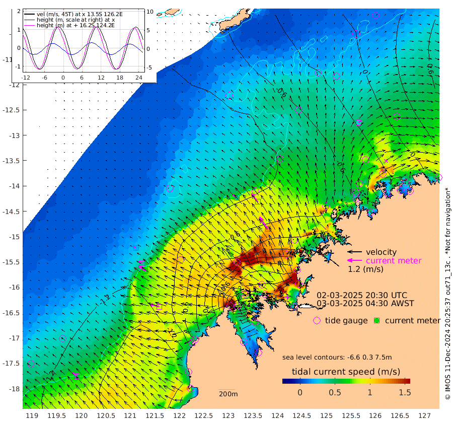 43cm/s -55T +10cm/s rms + 1cm/s 1T. NWSBRW 205m 48cm/s -47T +11cm/s rms + 6cm/s -110T. NWSROW 199m 121cm/s -35T +5cm/s rms + 2cm/s 65T. CAM050 58m 88cm/s -38T +12cm/s rms + 5cm/s 92T. CAM100 99m 18cm/s -63T +7cm/s rms + 1cm/s -85T. KIM400 396m 39cm/s -61T +9cm/s rms + 5cm/s -119T. KIM200 208m 71cm/s -54T +11cm/s rms + 5cm/s -147T. KIM100 99m 84cm/s -74T +8cm/s rms + 3cm/s -103T. KIM050 59m 31cm/s 48T +4cm/s rms + 2cm/s 23T. TIMORS88 91m 50cm Imperieuse Reef -115cm Mermaid Reef -207cm Broome -163cm Cape Baskerville -88cm Red Bluff -154cm Cape Boileau -106cm Scott Reef (WA) -74cm Ashmore Reef 77cm Karrakatta Bay 116cm Sunday Island 468cm Valentine Island 555cm Derby 396cm Port Usborne -13cm Bedford Islands -23cm Yampi Sound (Koolan Island) -61cm Macleay Island -100cm Adele Island -217cm Browse Island 62cm Shale Island 46cm Lizard Island -82cm Hall Point -100cm Degerando Island -134cm White Island -91cm Skua No. 4 Well -55cm Jabiru -163cm Maret Island -148cm Baudin Island -150cm Cape Voltaire (Krait Bay) -15cm Dillon Shoal -82cm Laminaria -133cm Port Warrender -86cm Troughton Island -146cm Cassini Island -111cm West Holothuria Reef Offshore -82cm Jar Island -113cm Lynher Bank -136cm Heywood Shoal -58cm Pee Shoal -43cm Van Cloon Shoal -92cm Carronade Island -95cm Guy Point -98cm Napier Broome Bay -48cm Lesueur Island