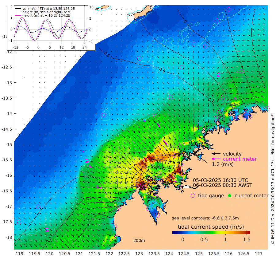 22cm/s 123T +10cm/s rms + 1cm/s 1T. NWSBRW 205m 32cm/s 132T +11cm/s rms + 6cm/s -110T. NWSROW 199m 87cm/s 145T +5cm/s rms + 2cm/s 65T. CAM050 58m 60cm/s 142T +12cm/s rms + 5cm/s 92T. CAM100 99m 13cm/s 114T +7cm/s rms + 1cm/s -85T. KIM400 396m 27cm/s 116T +9cm/s rms + 5cm/s -119T. KIM200 208m 48cm/s 123T +11cm/s rms + 5cm/s -147T. KIM100 99m 59cm/s 99T +8cm/s rms + 3cm/s -103T. KIM050 59m 27cm/s -124T +4cm/s rms + 2cm/s 23T. TIMORS88 91m -34cm Imperieuse Reef 84cm Mermaid Reef 212cm Broome 153cm Cape Baskerville 140cm Red Bluff 154cm Cape Boileau 70cm Scott Reef (WA) 46cm Ashmore Reef -8cm Karrakatta Bay -47cm Sunday Island -377cm Valentine Island -471cm Derby -313cm Port Usborne 63cm Bedford Islands 94cm Yampi Sound (Koolan Island) 93cm Macleay Island 101cm Adele Island 163cm Browse Island 51cm Shale Island 58cm Lizard Island 88cm Hall Point 136cm Degerando Island 160cm White Island 53cm Skua No. 4 Well -18cm Jabiru 148cm Maret Island 138cm Baudin Island 136cm Cape Voltaire (Krait Bay) -12cm Dillon Shoal 25cm Laminaria 136cm Port Warrender 42cm Troughton Island 118cm Cassini Island 78cm West Holothuria Reef Offshore 61cm Jar Island 98cm Lynher Bank 117cm Heywood Shoal 17cm Pee Shoal 7cm Van Cloon Shoal 48cm Carronade Island 47cm Guy Point 52cm Napier Broome Bay -29cm Lesueur Island