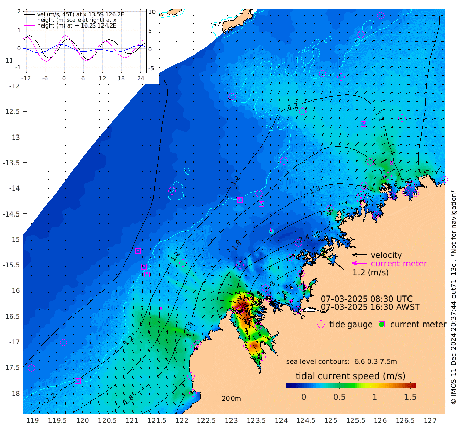 17cm/s -35T +10cm/s rms + 1cm/s 1T. NWSBRW 205m 20cm/s -22T +11cm/s rms + 6cm/s -110T. NWSROW 199m 27cm/s -22T +5cm/s rms + 2cm/s 65T. CAM050 58m 23cm/s -11T +12cm/s rms + 5cm/s 92T. CAM100 99m 5cm/s 0T +7cm/s rms + 1cm/s -85T. KIM400 396m 9cm/s -6T +9cm/s rms + 5cm/s -119T. KIM200 208m 21cm/s -9T +11cm/s rms + 5cm/s -147T. KIM100 99m 31cm/s -11T +8cm/s rms + 3cm/s -103T. KIM050 59m 15cm/s 24T +4cm/s rms + 2cm/s 23T. TIMORS88 91m 126cm Imperieuse Reef 89cm Mermaid Reef 193cm Broome 134cm Cape Baskerville 143cm Red Bluff 139cm Cape Boileau 85cm Scott Reef (WA) 108cm Ashmore Reef 227cm Karrakatta Bay 232cm Sunday Island 216cm Valentine Island 180cm Derby 229cm Port Usborne 236cm Bedford Islands 284cm Yampi Sound (Koolan Island) 285cm Macleay Island 179cm Adele Island 64cm Browse Island 350cm Shale Island 378cm Lizard Island 221cm Hall Point 228cm Degerando Island 217cm White Island 111cm Skua No. 4 Well 121cm Jabiru 168cm Maret Island 154cm Baudin Island 166cm Cape Voltaire (Krait Bay) 100cm Dillon Shoal 74cm Laminaria 190cm Port Warrender 143cm Troughton Island 146cm Cassini Island 121cm West Holothuria Reef Offshore 136cm Jar Island 139cm Lynher Bank 137cm Heywood Shoal 106cm Pee Shoal 95cm Van Cloon Shoal 98cm Carronade Island 102cm Guy Point 101cm Napier Broome Bay 66cm Lesueur Island