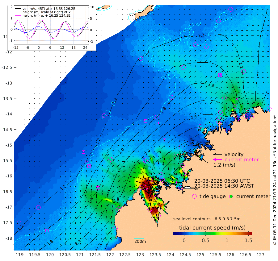 20cm/s -34T +10cm/s rms + 1cm/s 1T. NWSBRW 205m 20cm/s -15T +11cm/s rms + 6cm/s -110T. NWSROW 199m 16cm/s -17T +5cm/s rms + 2cm/s 65T. CAM050 58m 17cm/s 2T +12cm/s rms + 5cm/s 92T. CAM100 99m 6cm/s 11T +7cm/s rms + 1cm/s -85T. KIM400 396m 9cm/s 11T +9cm/s rms + 5cm/s -119T. KIM200 208m 21cm/s 4T +11cm/s rms + 5cm/s -147T. KIM100 99m 36cm/s 4T +8cm/s rms + 3cm/s -103T. KIM050 59m 17cm/s 37T +4cm/s rms + 2cm/s 23T. TIMORS88 91m 140cm Imperieuse Reef 116cm Mermaid Reef 288cm Broome 209cm Cape Baskerville 259cm Red Bluff 205cm Cape Boileau 101cm Scott Reef (WA) 141cm Ashmore Reef 300cm Karrakatta Bay 272cm Sunday Island 166cm Valentine Island 88cm Derby 183cm Port Usborne 303cm Bedford Islands 376cm Yampi Sound (Koolan Island) 365cm Macleay Island 244cm Adele Island 101cm Browse Island 454cm Shale Island 432cm Lizard Island 362cm Hall Point 315cm Degerando Island 300cm White Island 138cm Skua No. 4 Well 134cm Jabiru 240cm Maret Island 237cm Baudin Island 228cm Cape Voltaire (Krait Bay) 117cm Dillon Shoal 78cm Laminaria 258cm Port Warrender 177cm Troughton Island 216cm Cassini Island 166cm West Holothuria Reef Offshore 179cm Jar Island 171cm Lynher Bank 187cm Heywood Shoal 124cm Pee Shoal 113cm Van Cloon Shoal 118cm Carronade Island 115cm Guy Point 120cm Napier Broome Bay 55cm Lesueur Island