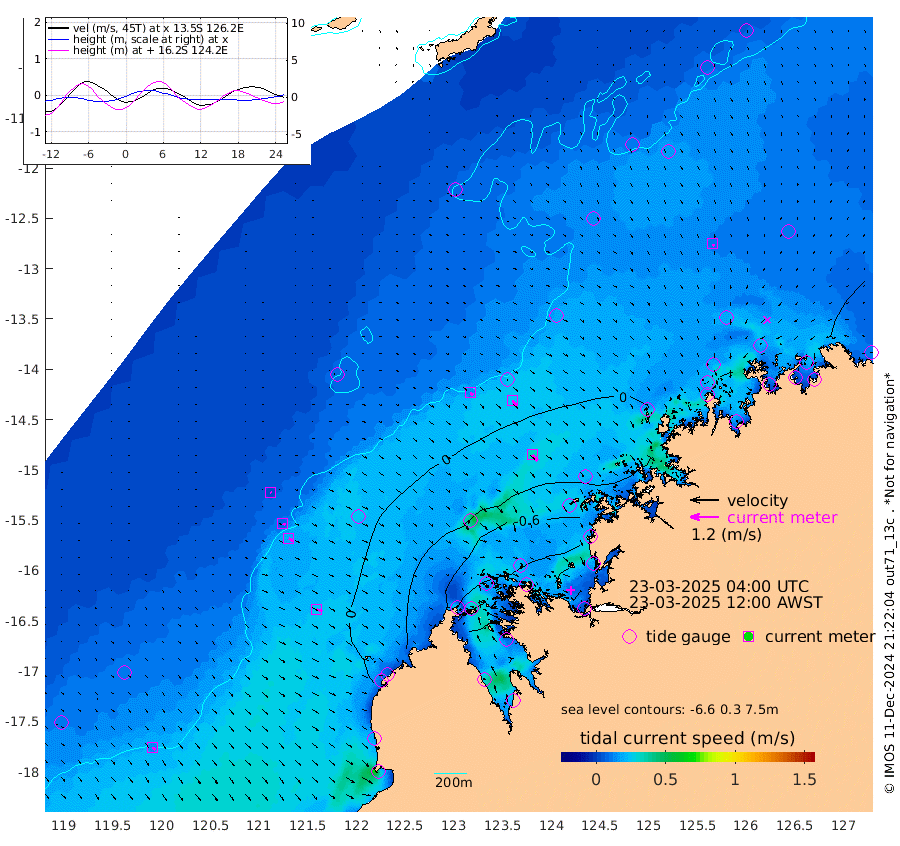 15cm/s 126T +10cm/s rms + 1cm/s 1T. NWSBRW 205m 14cm/s 138T +11cm/s rms + 6cm/s -110T. NWSROW 199m 34cm/s 138T +5cm/s rms + 2cm/s 65T. CAM050 58m 25cm/s 135T +12cm/s rms + 5cm/s 92T. CAM100 99m 4cm/s 119T +7cm/s rms + 1cm/s -85T. KIM400 396m 10cm/s 119T +9cm/s rms + 5cm/s -119T. KIM200 208m 19cm/s 127T +11cm/s rms + 5cm/s -147T. KIM100 99m 24cm/s 105T +8cm/s rms + 3cm/s -103T. KIM050 59m 10cm/s 150T +4cm/s rms + 2cm/s 23T. TIMORS88 91m -4cm Imperieuse Reef 42cm Mermaid Reef 54cm Broome 54cm Cape Baskerville 41cm Red Bluff 55cm Cape Boileau 40cm Scott Reef (WA) 31cm Ashmore Reef -38cm Karrakatta Bay -35cm Sunday Island -141cm Valentine Island -168cm Derby -134cm Port Usborne 9cm Bedford Islands -7cm Yampi Sound (Koolan Island) -33cm Macleay Island 19cm Adele Island 47cm Browse Island -48cm Shale Island -35cm Lizard Island -60cm Hall Point 30cm Degerando Island 29cm White Island 36cm Skua No. 4 Well 19cm Jabiru 48cm Maret Island 41cm Baudin Island 57cm Cape Voltaire (Krait Bay) 21cm Dillon Shoal 43cm Laminaria 61cm Port Warrender 45cm Troughton Island 55cm Cassini Island 46cm West Holothuria Reef Offshore 42cm Jar Island 42cm Lynher Bank 63cm Heywood Shoal 37cm Pee Shoal 43cm Van Cloon Shoal 59cm Carronade Island 63cm Guy Point 64cm Napier Broome Bay 65cm Lesueur Island