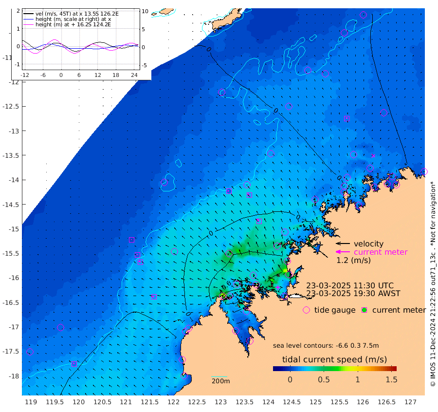 9cm/s -57T +10cm/s rms + 1cm/s 1T. NWSBRW 205m 10cm/s -50T +11cm/s rms + 6cm/s -110T. NWSROW 199m 27cm/s -36T +5cm/s rms + 2cm/s 65T. CAM050 58m 19cm/s -40T +12cm/s rms + 5cm/s 92T. CAM100 99m 4cm/s -65T +7cm/s rms + 1cm/s -85T. KIM400 396m 9cm/s -64T +9cm/s rms + 5cm/s -119T. KIM200 208m 16cm/s -52T +11cm/s rms + 5cm/s -147T. KIM100 99m 18cm/s -81T +8cm/s rms + 3cm/s -103T. KIM050 59m 10cm/s -10T +4cm/s rms + 2cm/s 23T. TIMORS88 91m 16cm Imperieuse Reef -24cm Mermaid Reef -64cm Broome -39cm Cape Baskerville -40cm Red Bluff -36cm Cape Boileau -17cm Scott Reef (WA) -5cm Ashmore Reef 24cm Karrakatta Bay 28cm Sunday Island 176cm Valentine Island 194cm Derby 131cm Port Usborne -23cm Bedford Islands -23cm Yampi Sound (Koolan Island) 20cm Macleay Island -10cm Adele Island -31cm Browse Island -6cm Shale Island -15cm Lizard Island 61cm Hall Point -40cm Degerando Island -38cm White Island -5cm Skua No. 4 Well 32cm Jabiru -35cm Maret Island -25cm Baudin Island -37cm Cape Voltaire (Krait Bay) 22cm Dillon Shoal -9cm Laminaria -27cm Port Warrender 12cm Troughton Island -22cm Cassini Island -4cm West Holothuria Reef Offshore -2cm Jar Island -32cm Lynher Bank -38cm Heywood Shoal 9cm Pee Shoal 15cm Van Cloon Shoal 1cm Carronade Island 3cm Guy Point 4cm Napier Broome Bay 28cm Lesueur Island
