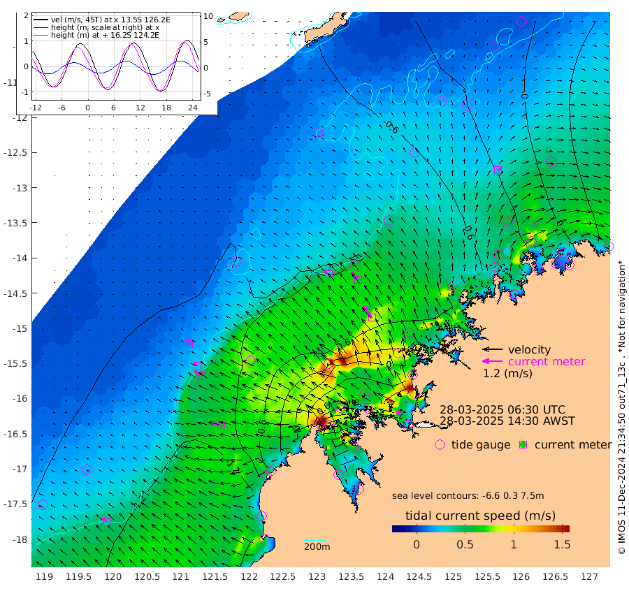 31cm/s -55T +10cm/s rms + 1cm/s 1T. NWSBRW 205m 35cm/s -47T +11cm/s rms + 6cm/s -110T. NWSROW 199m 87cm/s -36T +5cm/s rms + 2cm/s 65T. CAM050 58m 62cm/s -39T +12cm/s rms + 5cm/s 92T. CAM100 99m 13cm/s -67T +7cm/s rms + 1cm/s -85T. KIM400 396m 29cm/s -63T +9cm/s rms + 5cm/s -119T. KIM200 208m 53cm/s -55T +11cm/s rms + 5cm/s -147T. KIM100 99m 61cm/s -78T +8cm/s rms + 3cm/s -103T. KIM050 59m 23cm/s 51T +4cm/s rms + 2cm/s 23T. TIMORS88 91m 23cm Imperieuse Reef -95cm Mermaid Reef -169cm Broome -135cm Cape Baskerville -67cm Red Bluff -125cm Cape Boileau -92cm Scott Reef (WA) -67cm Ashmore Reef 20cm Karrakatta Bay 63cm Sunday Island 286cm Valentine Island 362cm Derby 241cm Port Usborne -34cm Bedford Islands -42cm Yampi Sound (Koolan Island) -107cm Macleay Island -99cm Adele Island -169cm Browse Island 3cm Shale Island 4cm Lizard Island -41cm Hall Point -86cm Degerando Island -109cm White Island -92cm Skua No. 4 Well -39cm Jabiru -136cm Maret Island -118cm Baudin Island -119cm Cape Voltaire (Krait Bay) -30cm Dillon Shoal -75cm Laminaria -95cm Port Warrender -71cm Troughton Island -119cm Cassini Island -86cm West Holothuria Reef Offshore -55cm Jar Island -89cm Lynher Bank -120cm Heywood Shoal -59cm Pee Shoal -23cm Van Cloon Shoal -51cm Carronade Island -61cm Guy Point -49cm Napier Broome Bay 5cm Lesueur Island