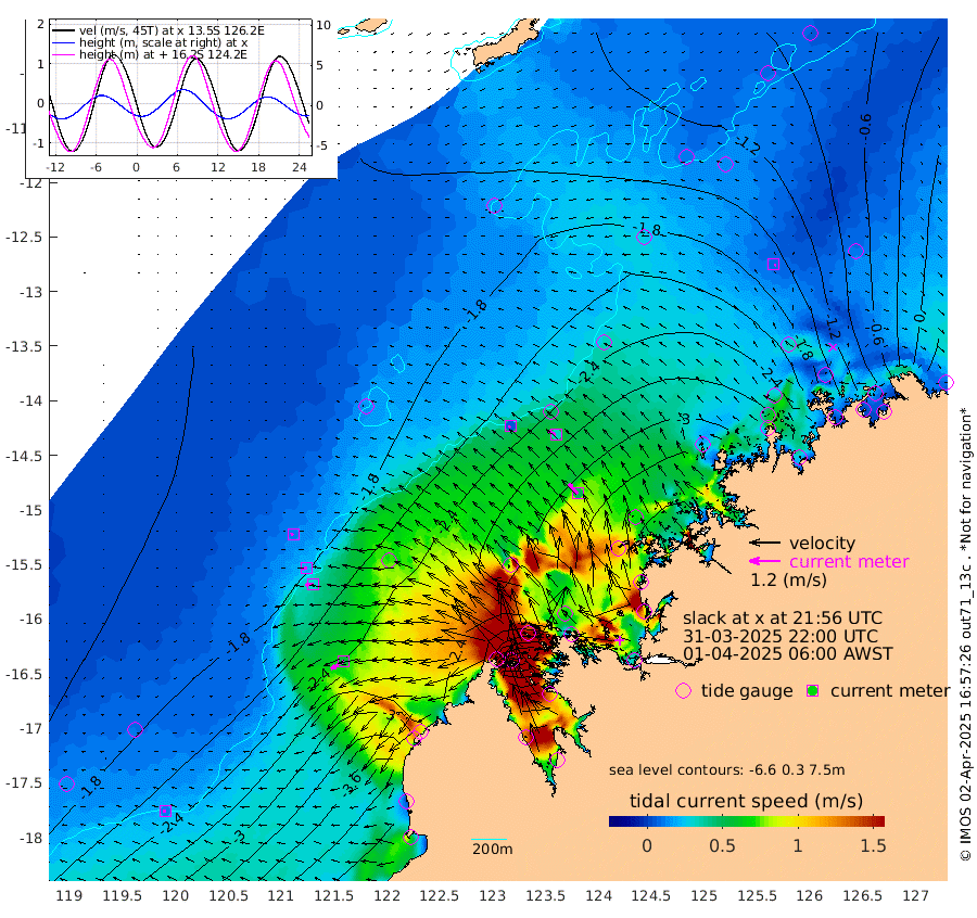 6cm/s -119T +10cm/s rms + 1cm/s 1T. NWSBRW 205m 12cm/s -106T +11cm/s rms + 6cm/s -110T. NWSROW 199m 52cm/s -44T +5cm/s rms + 2cm/s 65T. CAM050 58m 34cm/s -59T +12cm/s rms + 5cm/s 92T. CAM100 99m 10cm/s -103T +7cm/s rms + 1cm/s -85T. KIM400 396m 20cm/s -96T +9cm/s rms + 5cm/s -119T. KIM200 208m 32cm/s -97T +11cm/s rms + 5cm/s -147T. KIM100 99m 57cm/s -121T +8cm/s rms + 3cm/s -103T. KIM050 59m 9cm/s 98T +4cm/s rms + 2cm/s 23T. TIMORS88 91m -111cm Imperieuse Reef -173cm Mermaid Reef -441cm Broome -318cm Cape Baskerville -338cm Red Bluff -317cm Cape Boileau -158cm Scott Reef (WA) -169cm Ashmore Reef -286cm Karrakatta Bay -235cm Sunday Island 89cm Valentine Island 238cm Derby 24cm Port Usborne -367cm Bedford Islands -434cm Yampi Sound (Koolan Island) -469cm Macleay Island -331cm Adele Island -234cm Browse Island -472cm Shale Island -476cm Lizard Island -369cm Hall Point -413cm Degerando Island -397cm White Island -184cm Skua No. 4 Well -120cm Jabiru -350cm Maret Island -312cm Baudin Island -318cm Cape Voltaire (Krait Bay) -97cm Dillon Shoal -91cm Laminaria -338cm Port Warrender -191cm Troughton Island -295cm Cassini Island -205cm West Holothuria Reef Offshore -189cm Jar Island -243cm Lynher Bank -263cm Heywood Shoal -142cm Pee Shoal -97cm Van Cloon Shoal -118cm Carronade Island -115cm Guy Point -126cm Napier Broome Bay 22cm Lesueur Island