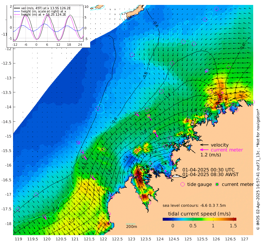 53cm/s 133T +10cm/s rms + 1cm/s 1T. NWSBRW 205m 54cm/s 146T +11cm/s rms + 6cm/s -110T. NWSROW 199m 95cm/s 147T +5cm/s rms + 2cm/s 65T. CAM050 58m 75cm/s 147T +12cm/s rms + 5cm/s 92T. CAM100 99m 14cm/s 141T +7cm/s rms + 1cm/s -85T. KIM400 396m 33cm/s 136T +9cm/s rms + 5cm/s -119T. KIM200 208m 65cm/s 143T +11cm/s rms + 5cm/s -147T. KIM100 99m 72cm/s 134T +8cm/s rms + 3cm/s -103T. KIM050 59m 33cm/s -146T +4cm/s rms + 2cm/s 23T. TIMORS88 91m -149cm Imperieuse Reef -14cm Mermaid Reef -151cm Broome -87cm Cape Baskerville -194cm Red Bluff -96cm Cape Boileau -11cm Scott Reef (WA) -58cm Ashmore Reef -341cm Karrakatta Bay -340cm Sunday Island -443cm Valentine Island -415cm Derby -430cm Port Usborne -312cm Bedford Islands -354cm Yampi Sound (Koolan Island) -345cm Macleay Island -175cm Adele Island 43cm Browse Island -490cm Shale Island -479cm Lizard Island -282cm Hall Point -249cm Degerando Island -191cm White Island -49cm Skua No. 4 Well -50cm Jabiru -118cm Maret Island -100cm Baudin Island -97cm Cape Voltaire (Krait Bay) -51cm Dillon Shoal 23cm Laminaria -129cm Port Warrender -52cm Troughton Island -82cm Cassini Island -40cm West Holothuria Reef Offshore -58cm Jar Island -82cm Lynher Bank -59cm Heywood Shoal -48cm Pee Shoal -21cm Van Cloon Shoal 21cm Carronade Island 33cm Guy Point 18cm Napier Broome Bay 97cm Lesueur Island