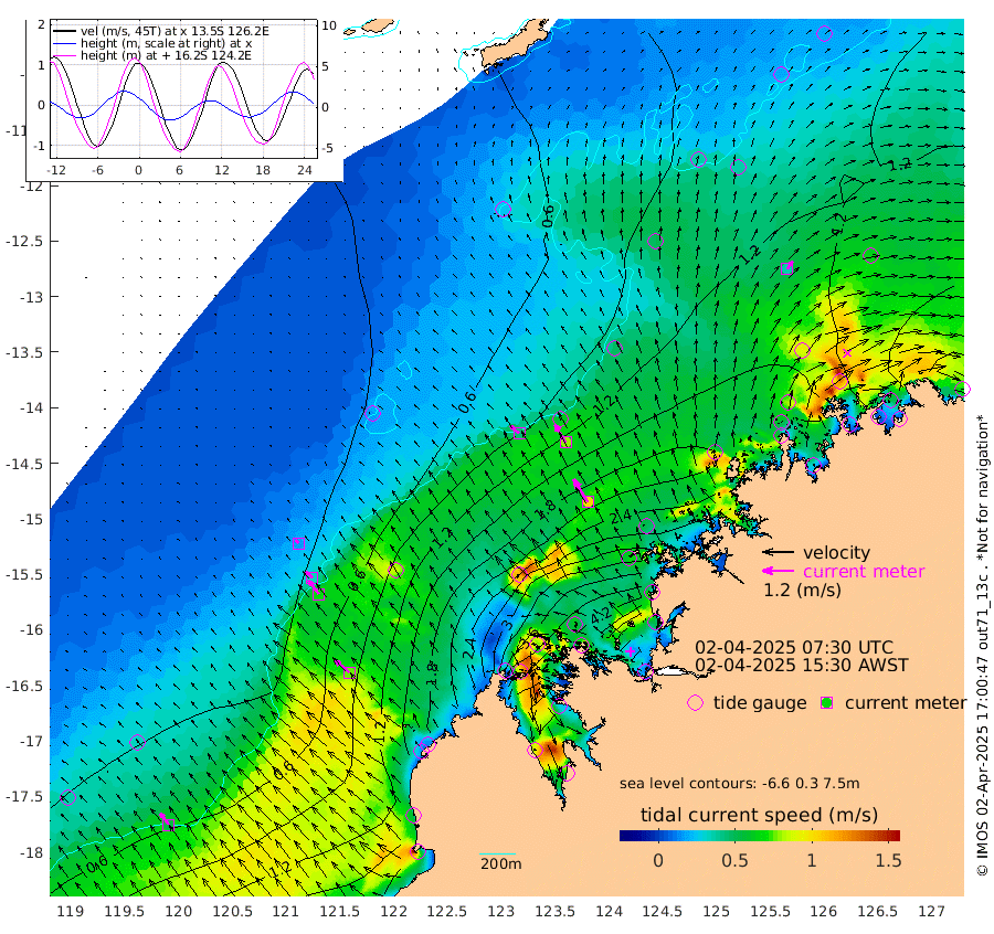 45cm/s -49T +10cm/s rms + 1cm/s 1T. NWSBRW 205m 54cm/s -36T +11cm/s rms + 6cm/s -110T. NWSROW 199m 103cm/s -32T +5cm/s rms + 2cm/s 65T. CAM050 58m 79cm/s -31T +12cm/s rms + 5cm/s 92T. CAM100 99m 16cm/s -44T +7cm/s rms + 1cm/s -85T. KIM400 396m 34cm/s -45T +9cm/s rms + 5cm/s -119T. KIM200 208m 66cm/s -38T +11cm/s rms + 5cm/s -147T. KIM100 99m 75cm/s -49T +8cm/s rms + 3cm/s -103T. KIM050 59m 37cm/s 33T +4cm/s rms + 2cm/s 23T. TIMORS88 91m 165cm Imperieuse Reef 15cm Mermaid Reef 101cm Broome 60cm Cape Baskerville 126cm Red Bluff 66cm Cape Boileau 18cm Scott Reef (WA) 69cm Ashmore Reef 311cm Karrakatta Bay 320cm Sunday Island 516cm Valentine Island 510cm Derby 482cm Port Usborne 271cm Bedford Islands 307cm Yampi Sound (Koolan Island) 301cm Macleay Island 148cm Adele Island -50cm Browse Island 436cm Shale Island 442cm Lizard Island 255cm Hall Point 208cm Degerando Island 156cm White Island 62cm Skua No. 4 Well 100cm Jabiru 99cm Maret Island 85cm Baudin Island 92cm Cape Voltaire (Krait Bay) 81cm Dillon Shoal 2cm Laminaria 129cm Port Warrender 100cm Troughton Island 83cm Cassini Island 58cm West Holothuria Reef Offshore 90cm Jar Island 76cm Lynher Bank 52cm Heywood Shoal 75cm Pee Shoal 65cm Van Cloon Shoal 32cm Carronade Island 25cm Guy Point 33cm Napier Broome Bay 13cm Lesueur Island