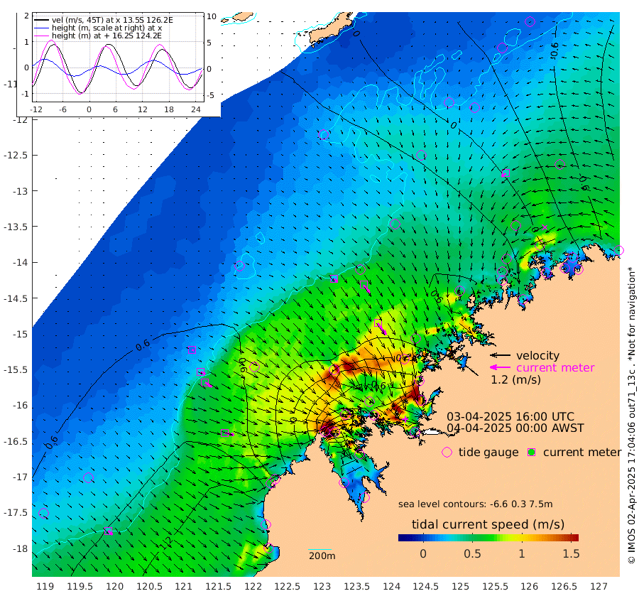 24cm/s 123T +10cm/s rms + 1cm/s 1T. NWSBRW 205m 33cm/s 134T +11cm/s rms + 6cm/s -110T. NWSROW 199m 85cm/s 145T +5cm/s rms + 2cm/s 65T. CAM050 58m 60cm/s 143T +12cm/s rms + 5cm/s 92T. CAM100 99m 12cm/s 117T +7cm/s rms + 1cm/s -85T. KIM400 396m 27cm/s 117T +9cm/s rms + 5cm/s -119T. KIM200 208m 49cm/s 124T +11cm/s rms + 5cm/s -147T. KIM100 99m 57cm/s 102T +8cm/s rms + 3cm/s -103T. KIM050 59m 33cm/s -126T +4cm/s rms + 2cm/s 23T. TIMORS88 91m -50cm Imperieuse Reef 69cm Mermaid Reef 184cm Broome 133cm Cape Baskerville 119cm Red Bluff 126cm Cape Boileau 53cm Scott Reef (WA) 28cm Ashmore Reef -33cm Karrakatta Bay -74cm Sunday Island -380cm Valentine Island -474cm Derby -325cm Port Usborne 37cm Bedford Islands 65cm Yampi Sound (Koolan Island) 63cm Macleay Island 77cm Adele Island 148cm Browse Island 17cm Shale Island 17cm Lizard Island 60cm Hall Point 105cm Degerando Island 134cm White Island 33cm Skua No. 4 Well -36cm Jabiru 123cm Maret Island 116cm Baudin Island 110cm Cape Voltaire (Krait Bay) -31cm Dillon Shoal 10cm Laminaria 108cm Port Warrender 19cm Troughton Island 93cm Cassini Island 56cm West Holothuria Reef Offshore 38cm Jar Island 76cm Lynher Bank 92cm Heywood Shoal -3cm Pee Shoal -15cm Van Cloon Shoal 25cm Carronade Island 23cm Guy Point 22cm Napier Broome Bay -50cm Lesueur Island