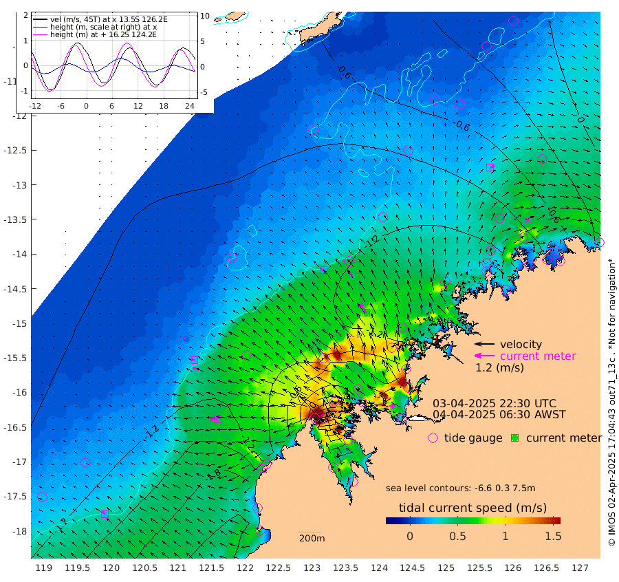 20cm/s -57T +10cm/s rms + 1cm/s 1T. NWSBRW 205m 22cm/s -55T +11cm/s rms + 6cm/s -110T. NWSROW 199m 65cm/s -33T +5cm/s rms + 2cm/s 65T. CAM050 58m 45cm/s -39T +12cm/s rms + 5cm/s 92T. CAM100 99m 9cm/s -74T +7cm/s rms + 1cm/s -85T. KIM400 396m 22cm/s -69T +9cm/s rms + 5cm/s -119T. KIM200 208m 38cm/s -64T +11cm/s rms + 5cm/s -147T. KIM100 99m 47cm/s -93T +8cm/s rms + 3cm/s -103T. KIM050 59m 27cm/s 69T +4cm/s rms + 2cm/s 23T. TIMORS88 91m -20cm Imperieuse Reef -106cm Mermaid Reef -247cm Broome -182cm Cape Baskerville -162cm Red Bluff -185cm Cape Boileau -92cm Scott Reef (WA) -84cm Ashmore Reef -58cm Karrakatta Bay -20cm Sunday Island 250cm Valentine Island 346cm Derby 203cm Port Usborne -119cm Bedford Islands -171cm Yampi Sound (Koolan Island) -163cm Macleay Island -145cm Adele Island -175cm Browse Island -145cm Shale Island -161cm Lizard Island -161cm Hall Point -195cm Degerando Island -216cm White Island -91cm Skua No. 4 Well -51cm Jabiru -194cm Maret Island -183cm Baudin Island -192cm Cape Voltaire (Krait Bay) -38cm Dillon Shoal -46cm Laminaria -211cm Port Warrender -122cm Troughton Island -173cm Cassini Island -130cm West Holothuria Reef Offshore -132cm Jar Island -131cm Lynher Bank -156cm Heywood Shoal -63cm Pee Shoal -67cm Van Cloon Shoal -116cm Carronade Island -117cm Guy Point -121cm Napier Broome Bay -61cm Lesueur Island