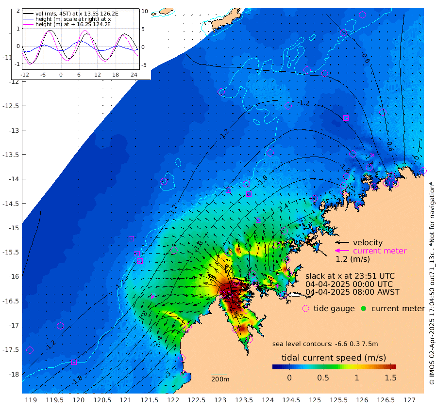 9cm/s 153T +10cm/s rms + 1cm/s 1T. NWSBRW 205m 8cm/s -164T +11cm/s rms + 6cm/s -110T. NWSROW 199m 14cm/s -44T +5cm/s rms + 2cm/s 65T. CAM050 58m 9cm/s -90T +12cm/s rms + 5cm/s 92T. CAM100 99m 5cm/s -128T +7cm/s rms + 1cm/s -85T. KIM400 396m 10cm/s -115T +9cm/s rms + 5cm/s -119T. KIM200 208m 17cm/s -125T +11cm/s rms + 5cm/s -147T. KIM100 99m 33cm/s -144T +8cm/s rms + 3cm/s -103T. KIM050 59m 15cm/s 111T +4cm/s rms + 2cm/s 23T. TIMORS88 91m -90cm Imperieuse Reef -105cm Mermaid Reef -294cm Broome -202cm Cape Baskerville -221cm Red Bluff -205cm Cape Boileau -92cm Scott Reef (WA) -102cm Ashmore Reef -217cm Karrakatta Bay -186cm Sunday Island -5cm Valentine Island 95cm Derby -44cm Port Usborne -261cm Bedford Islands -327cm Yampi Sound (Koolan Island) -324cm Macleay Island -214cm Adele Island -137cm Browse Island -376cm Shale Island -395cm Lizard Island -289cm Hall Point -292cm Degerando Island -288cm White Island -105cm Skua No. 4 Well -73cm Jabiru -228cm Maret Island -208cm Baudin Island -214cm Cape Voltaire (Krait Bay) -55cm Dillon Shoal -36cm Laminaria -243cm Port Warrender -128cm Troughton Island -184cm Cassini Island -129cm West Holothuria Reef Offshore -138cm Jar Island -163cm Lynher Bank -165cm Heywood Shoal -76cm Pee Shoal -60cm Van Cloon Shoal -84cm Carronade Island -82cm Guy Point -86cm Napier Broome Bay 4cm Lesueur Island