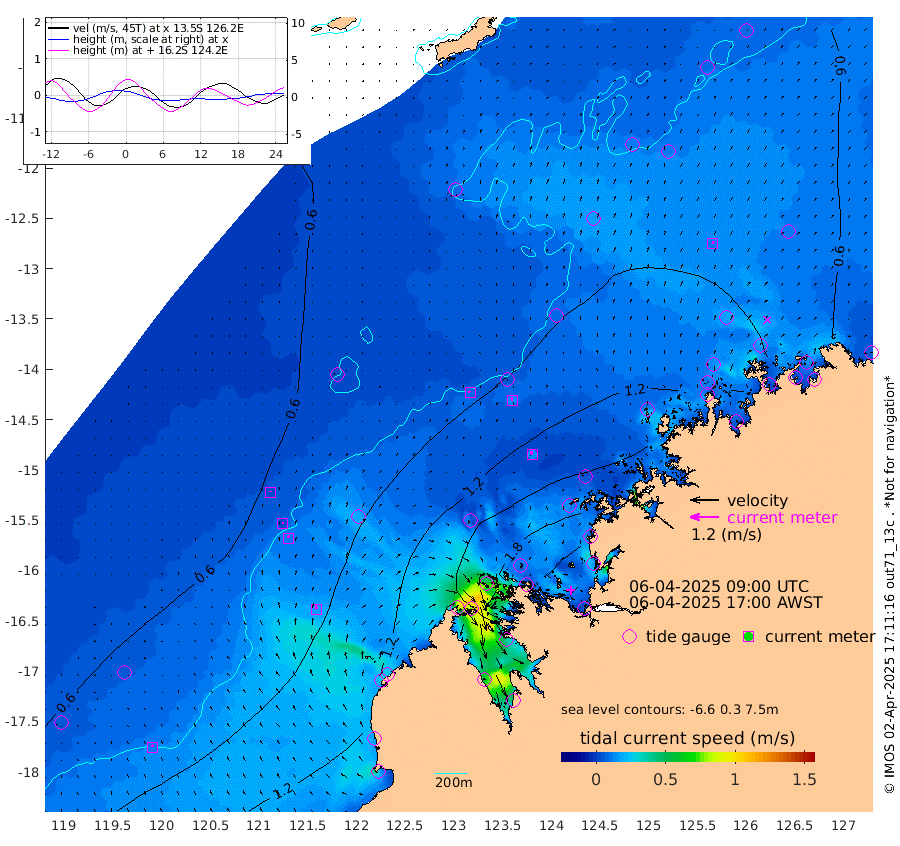 9cm/s -32T +10cm/s rms + 1cm/s 1T. NWSBRW 205m 10cm/s -23T +11cm/s rms + 6cm/s -110T. NWSROW 199m 15cm/s -21T +5cm/s rms + 2cm/s 65T. CAM050 58m 13cm/s -10T +12cm/s rms + 5cm/s 92T. CAM100 99m 3cm/s 11T +7cm/s rms + 1cm/s -85T. KIM400 396m 4cm/s 0T +9cm/s rms + 5cm/s -119T. KIM200 208m 10cm/s -9T +11cm/s rms + 5cm/s -147T. KIM100 99m 16cm/s -9T +8cm/s rms + 3cm/s -103T. KIM050 59m 12cm/s 12T +4cm/s rms + 2cm/s 23T. TIMORS88 91m 72cm Imperieuse Reef 54cm Mermaid Reef 101cm Broome 69cm Cape Baskerville 63cm Red Bluff 82cm Cape Boileau 54cm Scott Reef (WA) 62cm Ashmore Reef 126cm Karrakatta Bay 138cm Sunday Island 133cm Valentine Island 125cm Derby 143cm Port Usborne 119cm Bedford Islands 153cm Yampi Sound (Koolan Island) 165cm Macleay Island 100cm Adele Island 40cm Browse Island 190cm Shale Island 219cm Lizard Island 178cm Hall Point 120cm Degerando Island 123cm White Island 65cm Skua No. 4 Well 97cm Jabiru 89cm Maret Island 84cm Baudin Island 90cm Cape Voltaire (Krait Bay) 69cm Dillon Shoal 50cm Laminaria 105cm Port Warrender 85cm Troughton Island 76cm Cassini Island 74cm West Holothuria Reef Offshore 82cm Jar Island 81cm Lynher Bank 79cm Heywood Shoal 63cm Pee Shoal 64cm Van Cloon Shoal 67cm Carronade Island 74cm Guy Point 75cm Napier Broome Bay 56cm Lesueur Island