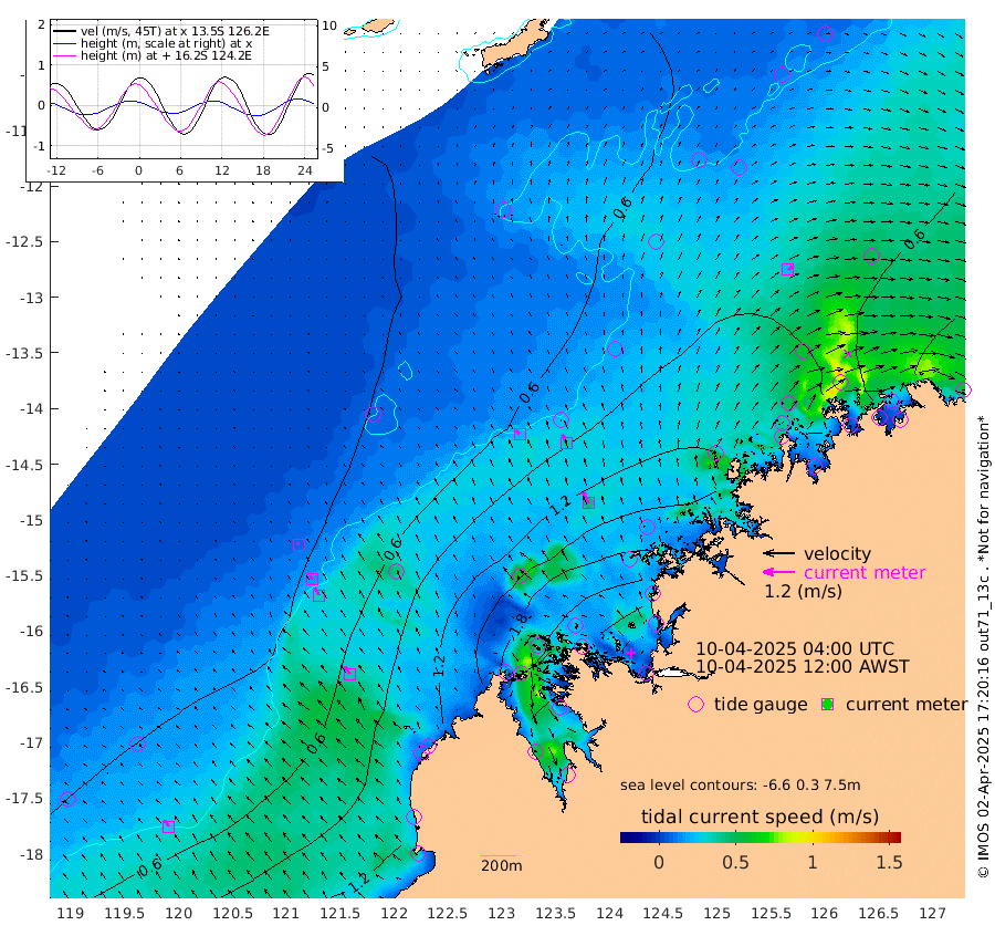 21cm/s -47T +10cm/s rms + 1cm/s 1T. NWSBRW 205m 29cm/s -32T +11cm/s rms + 6cm/s -110T. NWSROW 199m 45cm/s -26T +5cm/s rms + 2cm/s 65T. CAM050 58m 35cm/s -24T +12cm/s rms + 5cm/s 92T. CAM100 99m 8cm/s -37T +7cm/s rms + 1cm/s -85T. KIM400 396m 17cm/s -38T +9cm/s rms + 5cm/s -119T. KIM200 208m 34cm/s -30T +11cm/s rms + 5cm/s -147T. KIM100 99m 36cm/s -37T +8cm/s rms + 3cm/s -103T. KIM050 59m 24cm/s 59T +4cm/s rms + 2cm/s 23T. TIMORS88 91m 102cm Imperieuse Reef 32cm Mermaid Reef 120cm Broome 85cm Cape Baskerville 143cm Red Bluff 87cm Cape Boileau 33cm Scott Reef (WA) 62cm Ashmore Reef 200cm Karrakatta Bay 207cm Sunday Island 253cm Valentine Island 221cm Derby 235cm Port Usborne 217cm Bedford Islands 221cm Yampi Sound (Koolan Island) 216cm Macleay Island 132cm Adele Island -1cm Browse Island 280cm Shale Island 282cm Lizard Island 130cm Hall Point 178cm Degerando Island 130cm White Island 61cm Skua No. 4 Well 53cm Jabiru 108cm Maret Island 83cm Baudin Island 96cm Cape Voltaire (Krait Bay) 53cm Dillon Shoal 15cm Laminaria 122cm Port Warrender 74cm Troughton Island 93cm Cassini Island 58cm West Holothuria Reef Offshore 63cm Jar Island 78cm Lynher Bank 71cm Heywood Shoal 70cm Pee Shoal 49cm Van Cloon Shoal 26cm Carronade Island 19cm Guy Point 29cm Napier Broome Bay -13cm Lesueur Island