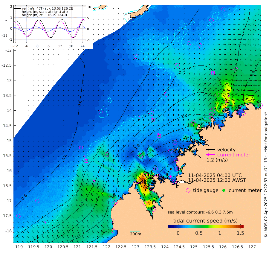 22cm/s -42T +10cm/s rms + 1cm/s 1T. NWSBRW 205m 30cm/s -27T +11cm/s rms + 6cm/s -110T. NWSROW 199m 41cm/s -23T +5cm/s rms + 2cm/s 65T. CAM050 58m 34cm/s -20T +12cm/s rms + 5cm/s 92T. CAM100 99m 8cm/s -24T +7cm/s rms + 1cm/s -85T. KIM400 396m 16cm/s -27T +9cm/s rms + 5cm/s -119T. KIM200 208m 34cm/s -22T +11cm/s rms + 5cm/s -147T. KIM100 99m 39cm/s -23T +8cm/s rms + 3cm/s -103T. KIM050 59m 24cm/s 54T +4cm/s rms + 2cm/s 23T. TIMORS88 91m 130cm Imperieuse Reef 68cm Mermaid Reef 207cm Broome 146cm Cape Baskerville 206cm Red Bluff 149cm Cape Boileau 68cm Scott Reef (WA) 99cm Ashmore Reef 266cm Karrakatta Bay 272cm Sunday Island 267cm Valentine Island 213cm Derby 262cm Port Usborne 296cm Bedford Islands 320cm Yampi Sound (Koolan Island) 329cm Macleay Island 206cm Adele Island 43cm Browse Island 392cm Shale Island 395cm Lizard Island 237cm Hall Point 265cm Degerando Island 219cm White Island 99cm Skua No. 4 Well 86cm Jabiru 178cm Maret Island 146cm Baudin Island 162cm Cape Voltaire (Krait Bay) 82cm Dillon Shoal 38cm Laminaria 197cm Port Warrender 117cm Troughton Island 151cm Cassini Island 104cm West Holothuria Reef Offshore 105cm Jar Island 131cm Lynher Bank 127cm Heywood Shoal 101cm Pee Shoal 72cm Van Cloon Shoal 54cm Carronade Island 49cm Guy Point 56cm Napier Broome Bay -14cm Lesueur Island