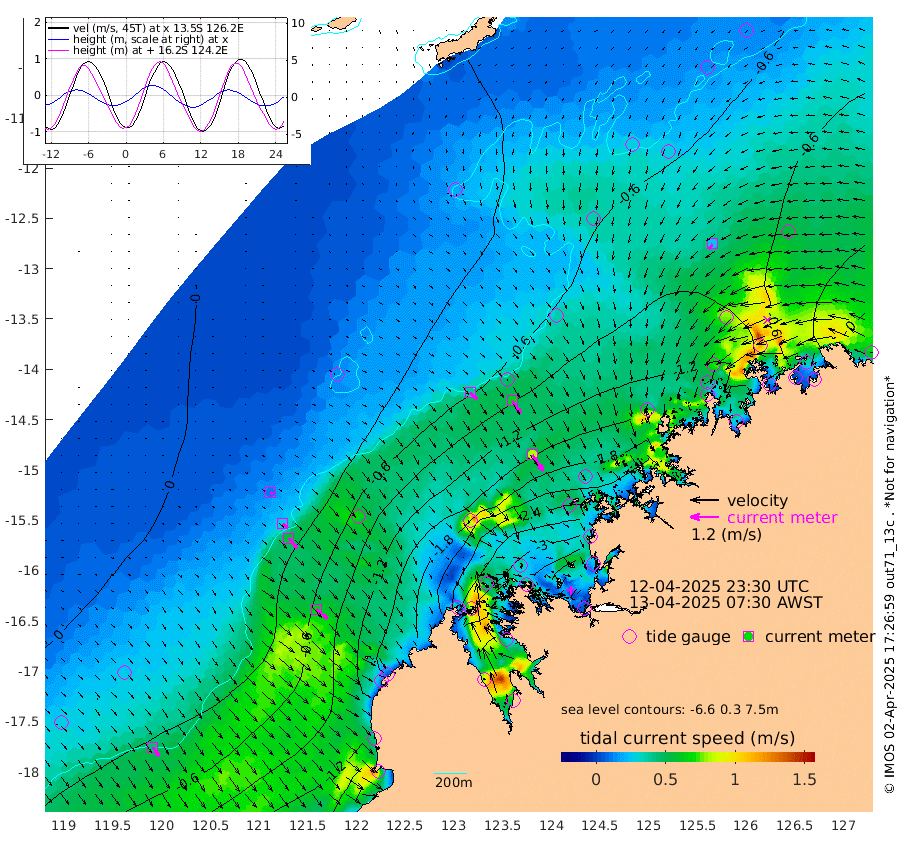 41cm/s 131T +10cm/s rms + 1cm/s 1T. NWSBRW 205m 45cm/s 146T +11cm/s rms + 6cm/s -110T. NWSROW 199m 83cm/s 146T +5cm/s rms + 2cm/s 65T. CAM050 58m 64cm/s 146T +12cm/s rms + 5cm/s 92T. CAM100 99m 12cm/s 136T +7cm/s rms + 1cm/s -85T. KIM400 396m 28cm/s 133T +9cm/s rms + 5cm/s -119T. KIM200 208m 55cm/s 141T +11cm/s rms + 5cm/s -147T. KIM100 99m 60cm/s 131T +8cm/s rms + 3cm/s -103T. KIM050 59m 26cm/s -144T +4cm/s rms + 2cm/s 23T. TIMORS88 91m -116cm Imperieuse Reef -3cm Mermaid Reef -98cm Broome -57cm Cape Baskerville -149cm Red Bluff -71cm Cape Boileau -3cm Scott Reef (WA) -33cm Ashmore Reef -251cm Karrakatta Bay -267cm Sunday Island -378cm Valentine Island -351cm Derby -345cm Port Usborne -240cm Bedford Islands -262cm Yampi Sound (Koolan Island) -243cm Macleay Island -122cm Adele Island 52cm Browse Island -358cm Shale Island -372cm Lizard Island -202cm Hall Point -185cm Degerando Island -137cm White Island -25cm Skua No. 4 Well -34cm Jabiru -76cm Maret Island -58cm Baudin Island -67cm Cape Voltaire (Krait Bay) -35cm Dillon Shoal 27cm Laminaria -109cm Port Warrender -35cm Troughton Island -48cm Cassini Island -24cm West Holothuria Reef Offshore -40cm Jar Island -60cm Lynher Bank -41cm Heywood Shoal -33cm Pee Shoal -20cm Van Cloon Shoal 11cm Carronade Island 17cm Guy Point 7cm Napier Broome Bay 64cm Lesueur Island