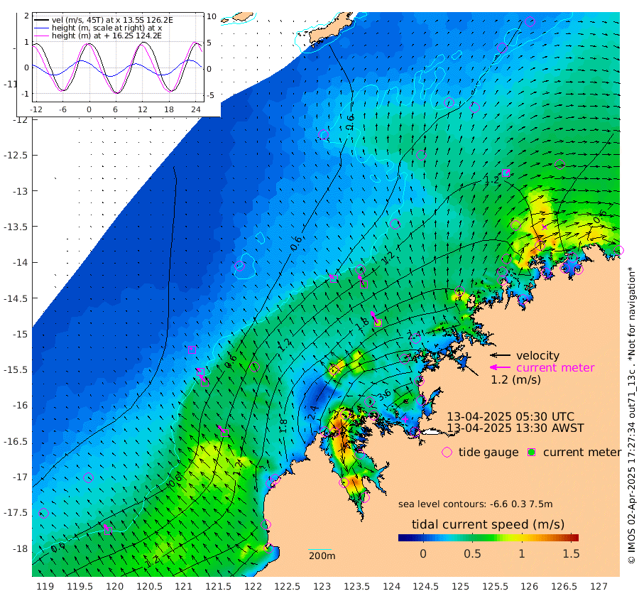 36cm/s -48T +10cm/s rms + 1cm/s 1T. NWSBRW 205m 45cm/s -34T +11cm/s rms + 6cm/s -110T. NWSROW 199m 80cm/s -30T +5cm/s rms + 2cm/s 65T. CAM050 58m 62cm/s -29T +12cm/s rms + 5cm/s 92T. CAM100 99m 13cm/s -41T +7cm/s rms + 1cm/s -85T. KIM400 396m 27cm/s -42T +9cm/s rms + 5cm/s -119T. KIM200 208m 54cm/s -35T +11cm/s rms + 5cm/s -147T. KIM100 99m 60cm/s -44T +8cm/s rms + 3cm/s -103T. KIM050 59m 30cm/s 43T +4cm/s rms + 2cm/s 23T. TIMORS88 91m 143cm Imperieuse Reef 31cm Mermaid Reef 141cm Broome 89cm Cape Baskerville 164cm Red Bluff 100cm Cape Boileau 32cm Scott Reef (WA) 72cm Ashmore Reef 281cm Karrakatta Bay 303cm Sunday Island 390cm Valentine Island 375cm Derby 376cm Port Usborne 277cm Bedford Islands 312cm Yampi Sound (Koolan Island) 296cm Macleay Island 166cm Adele Island -21cm Browse Island 410cm Shale Island 416cm Lizard Island 261cm Hall Point 232cm Degerando Island 185cm White Island 61cm Skua No. 4 Well 82cm Jabiru 124cm Maret Island 103cm Baudin Island 117cm Cape Voltaire (Krait Bay) 75cm Dillon Shoal 6cm Laminaria 162cm Port Warrender 94cm Troughton Island 100cm Cassini Island 72cm West Holothuria Reef Offshore 92cm Jar Island 97cm Lynher Bank 79cm Heywood Shoal 73cm Pee Shoal 65cm Van Cloon Shoal 42cm Carronade Island 36cm Guy Point 45cm Napier Broome Bay 0cm Lesueur Island