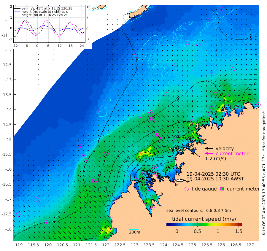 32cm/s 128T +10cm/s rms + 1cm/s 1T. NWSBRW 205m 31cm/s 139T +11cm/s rms + 6cm/s -110T. NWSROW 199m 66cm/s 142T +5cm/s rms + 2cm/s 65T. CAM050 58m 50cm/s 140T +12cm/s rms + 5cm/s 92T. CAM100 99m 9cm/s 124T +7cm/s rms + 1cm/s -85T. KIM400 396m 20cm/s 125T +9cm/s rms + 5cm/s -119T. KIM200 208m 40cm/s 132T +11cm/s rms + 5cm/s -147T. KIM100 99m 47cm/s 114T +8cm/s rms + 3cm/s -103T. KIM050 59m 19cm/s -163T +4cm/s rms + 2cm/s 23T. TIMORS88 91m -34cm Imperieuse Reef 55cm Mermaid Reef 47cm Broome 56cm Cape Baskerville 7cm Red Bluff 55cm Cape Boileau 54cm Scott Reef (WA) 35cm Ashmore Reef -106cm Karrakatta Bay -114cm Sunday Island -266cm Valentine Island -297cm Derby -251cm Port Usborne -51cm Bedford Islands -75cm Yampi Sound (Koolan Island) -82cm Macleay Island 0cm Adele Island 88cm Browse Island -152cm Shale Island -132cm Lizard Island -137cm Hall Point -11cm Degerando Island 4cm White Island 47cm Skua No. 4 Well 17cm Jabiru 49cm Maret Island 43cm Baudin Island 57cm Cape Voltaire (Krait Bay) 18cm Dillon Shoal 62cm Laminaria 48cm Port Warrender 55cm Troughton Island 63cm Cassini Island 56cm West Holothuria Reef Offshore 45cm Jar Island 39cm Lynher Bank 68cm Heywood Shoal 44cm Pee Shoal 50cm Van Cloon Shoal 78cm Carronade Island 84cm Guy Point 84cm Napier Broome Bay 97cm Lesueur Island