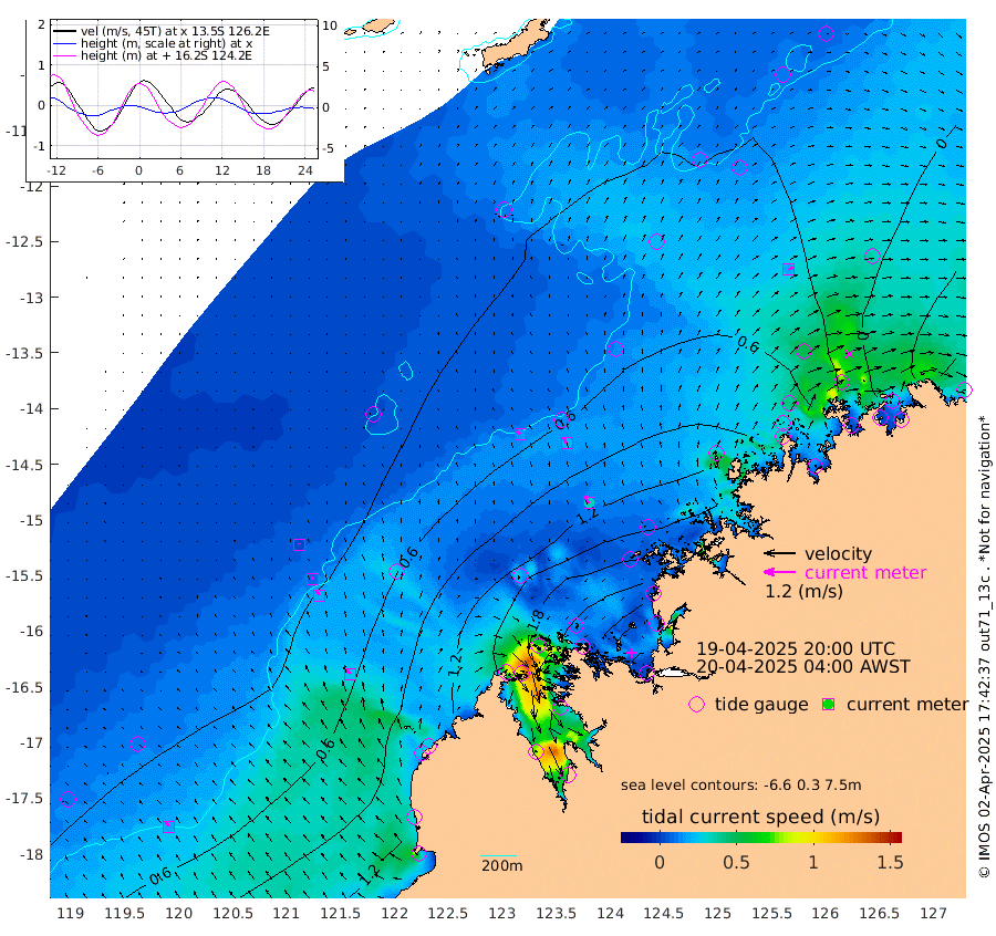 16cm/s -42T +10cm/s rms + 1cm/s 1T. NWSBRW 205m 19cm/s -31T +11cm/s rms + 6cm/s -110T. NWSROW 199m 32cm/s -32T +5cm/s rms + 2cm/s 65T. CAM050 58m 23cm/s -26T +12cm/s rms + 5cm/s 92T. CAM100 99m 4cm/s -17T +7cm/s rms + 1cm/s -85T. KIM400 396m 10cm/s -31T +9cm/s rms + 5cm/s -119T. KIM200 208m 20cm/s -34T +11cm/s rms + 5cm/s -147T. KIM100 99m 25cm/s -37T +8cm/s rms + 3cm/s -103T. KIM050 59m 19cm/s 56T +4cm/s rms + 2cm/s 23T. TIMORS88 91m 51cm Imperieuse Reef 13cm Mermaid Reef 71cm Broome 32cm Cape Baskerville 80cm Red Bluff 22cm Cape Boileau 6cm Scott Reef (WA) 25cm Ashmore Reef 145cm Karrakatta Bay 138cm Sunday Island 156cm Valentine Island 152cm Derby 176cm Port Usborne 124cm Bedford Islands 157cm Yampi Sound (Koolan Island) 160cm Macleay Island 77cm Adele Island -21cm Browse Island 230cm Shale Island 220cm Lizard Island 197cm Hall Point 100cm Degerando Island 87cm White Island 18cm Skua No. 4 Well 19cm Jabiru 47cm Maret Island 38cm Baudin Island 29cm Cape Voltaire (Krait Bay) 13cm Dillon Shoal 5cm Laminaria 24cm Port Warrender -8cm Troughton Island 19cm Cassini Island 3cm West Holothuria Reef Offshore -1cm Jar Island 36cm Lynher Bank 23cm Heywood Shoal 8cm Pee Shoal -23cm Van Cloon Shoal -45cm Carronade Island -49cm Guy Point -53cm Napier Broome Bay -102cm Lesueur Island