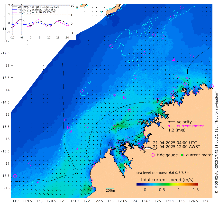 14cm/s 123T +10cm/s rms + 1cm/s 1T. NWSBRW 205m 14cm/s 136T +11cm/s rms + 6cm/s -110T. NWSROW 199m 32cm/s 140T +5cm/s rms + 2cm/s 65T. CAM050 58m 24cm/s 134T +12cm/s rms + 5cm/s 92T. CAM100 99m 4cm/s 121T +7cm/s rms + 1cm/s -85T. KIM400 396m 9cm/s 123T +9cm/s rms + 5cm/s -119T. KIM200 208m 18cm/s 129T +11cm/s rms + 5cm/s -147T. KIM100 99m 22cm/s 106T +8cm/s rms + 3cm/s -103T. KIM050 59m 11cm/s -179T +4cm/s rms + 2cm/s 23T. TIMORS88 91m -1cm Imperieuse Reef 41cm Mermaid Reef 51cm Broome 47cm Cape Baskerville 35cm Red Bluff 56cm Cape Boileau 39cm Scott Reef (WA) 31cm Ashmore Reef -41cm Karrakatta Bay -35cm Sunday Island -148cm Valentine Island -165cm Derby -134cm Port Usborne 0cm Bedford Islands -6cm Yampi Sound (Koolan Island) -42cm Macleay Island 13cm Adele Island 48cm Browse Island -49cm Shale Island -18cm Lizard Island -53cm Hall Point 28cm Degerando Island 33cm White Island 34cm Skua No. 4 Well 24cm Jabiru 48cm Maret Island 41cm Baudin Island 60cm Cape Voltaire (Krait Bay) 21cm Dillon Shoal 41cm Laminaria 66cm Port Warrender 50cm Troughton Island 55cm Cassini Island 49cm West Holothuria Reef Offshore 52cm Jar Island 43cm Lynher Bank 62cm Heywood Shoal 36cm Pee Shoal 51cm Van Cloon Shoal 73cm Carronade Island 76cm Guy Point 82cm Napier Broome Bay 85cm Lesueur Island