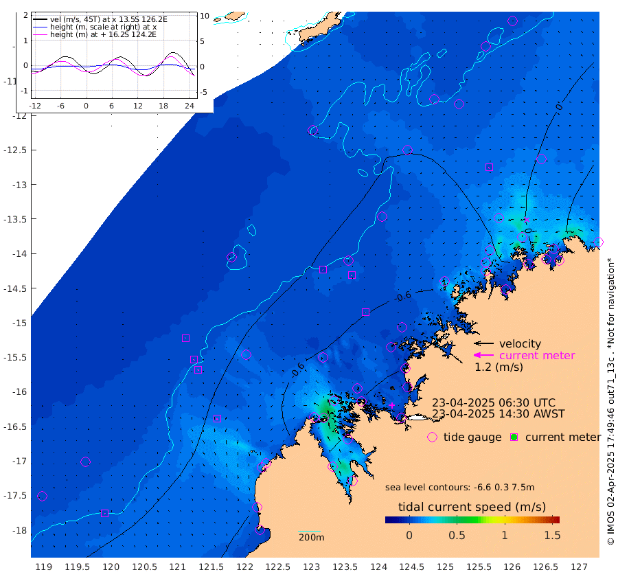 1cm/s 154T +10cm/s rms + 1cm/s 1T. NWSBRW 205m 4cm/s 160T +11cm/s rms + 6cm/s -110T. NWSROW 199m 2cm/s -134T +5cm/s rms + 2cm/s 65T. CAM050 58m 2cm/s -142T +12cm/s rms + 5cm/s 92T. CAM100 99m 2cm/s -149T +7cm/s rms + 1cm/s -85T. KIM400 396m 3cm/s -151T +9cm/s rms + 5cm/s -119T. KIM200 208m 6cm/s -155T +11cm/s rms + 5cm/s -147T. KIM100 99m 9cm/s -163T +8cm/s rms + 3cm/s -103T. KIM050 59m 4cm/s -142T +4cm/s rms + 2cm/s 23T. TIMORS88 91m -20cm Imperieuse Reef -18cm Mermaid Reef -64cm Broome -52cm Cape Baskerville -63cm Red Bluff -35cm Cape Boileau -18cm Scott Reef (WA) -28cm Ashmore Reef -86cm Karrakatta Bay -66cm Sunday Island -82cm Valentine Island -49cm Derby -71cm Port Usborne -83cm Bedford Islands -86cm Yampi Sound (Koolan Island) -145cm Macleay Island -79cm Adele Island -29cm Browse Island -111cm Shale Island -59cm Lizard Island -74cm Hall Point -67cm Degerando Island -56cm White Island -34cm Skua No. 4 Well -3cm Jabiru -55cm Maret Island -49cm Baudin Island -32cm Cape Voltaire (Krait Bay) -22cm Dillon Shoal -9cm Laminaria -31cm Port Warrender -20cm Troughton Island -45cm Cassini Island -24cm West Holothuria Reef Offshore -3cm Jar Island -23cm Lynher Bank -27cm Heywood Shoal -26cm Pee Shoal 9cm Van Cloon Shoal 25cm Carronade Island 25cm Guy Point 35cm Napier Broome Bay 70cm Lesueur Island