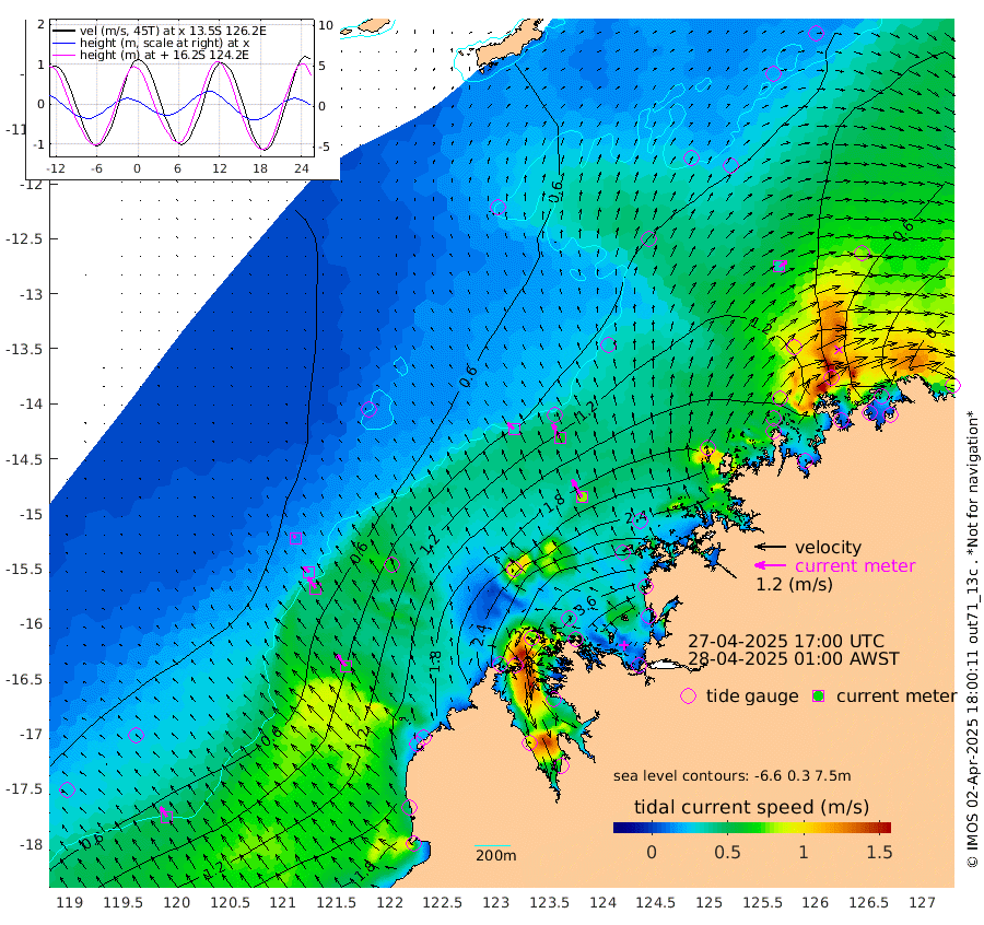 34cm/s -45T +10cm/s rms + 1cm/s 1T. NWSBRW 205m 45cm/s -35T +11cm/s rms + 6cm/s -110T. NWSROW 199m 79cm/s -29T +5cm/s rms + 2cm/s 65T. CAM050 58m 60cm/s -27T +12cm/s rms + 5cm/s 92T. CAM100 99m 13cm/s -37T +7cm/s rms + 1cm/s -85T. KIM400 396m 28cm/s -41T +9cm/s rms + 5cm/s -119T. KIM200 208m 52cm/s -36T +11cm/s rms + 5cm/s -147T. KIM100 99m 61cm/s -40T +8cm/s rms + 3cm/s -103T. KIM050 59m 36cm/s 55T +4cm/s rms + 2cm/s 23T. TIMORS88 91m 137cm Imperieuse Reef 29cm Mermaid Reef 141cm Broome 93cm Cape Baskerville 202cm Red Bluff 95cm Cape Boileau 25cm Scott Reef (WA) 70cm Ashmore Reef 309cm Karrakatta Bay 309cm Sunday Island 386cm Valentine Island 364cm Derby 371cm Port Usborne 283cm Bedford Islands 313cm Yampi Sound (Koolan Island) 305cm Macleay Island 167cm Adele Island -45cm Browse Island 427cm Shale Island 385cm Lizard Island 267cm Hall Point 224cm Degerando Island 168cm White Island 63cm Skua No. 4 Well 57cm Jabiru 116cm Maret Island 99cm Baudin Island 96cm Cape Voltaire (Krait Bay) 76cm Dillon Shoal 12cm Laminaria 120cm Port Warrender 54cm Troughton Island 88cm Cassini Island 49cm West Holothuria Reef Offshore 53cm Jar Island 79cm Lynher Bank 86cm Heywood Shoal 65cm Pee Shoal 29cm Van Cloon Shoal -14cm Carronade Island -17cm Guy Point -16cm Napier Broome Bay -93cm Lesueur Island