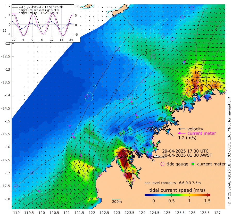 32cm/s -39T +10cm/s rms + 1cm/s 1T. NWSBRW 205m 40cm/s -28T +11cm/s rms + 6cm/s -110T. NWSROW 199m 55cm/s -26T +5cm/s rms + 2cm/s 65T. CAM050 58m 45cm/s -22T +12cm/s rms + 5cm/s 92T. CAM100 99m 10cm/s -16T +7cm/s rms + 1cm/s -85T. KIM400 396m 21cm/s -26T +9cm/s rms + 5cm/s -119T. KIM200 208m 42cm/s -25T +11cm/s rms + 5cm/s -147T. KIM100 99m 54cm/s -21T +8cm/s rms + 3cm/s -103T. KIM050 59m 34cm/s 56T +4cm/s rms + 2cm/s 23T. TIMORS88 91m 149cm Imperieuse Reef 75cm Mermaid Reef 253cm Broome 170cm Cape Baskerville 270cm Red Bluff 166cm Cape Boileau 66cm Scott Reef (WA) 104cm Ashmore Reef 363cm Karrakatta Bay 353cm Sunday Island 319cm Valentine Island 260cm Derby 336cm Port Usborne 369cm Bedford Islands 409cm Yampi Sound (Koolan Island) 415cm Macleay Island 243cm Adele Island 19cm Browse Island 530cm Shale Island 498cm Lizard Island 358cm Hall Point 317cm Degerando Island 263cm White Island 102cm Skua No. 4 Well 82cm Jabiru 196cm Maret Island 169cm Baudin Island 163cm Cape Voltaire (Krait Bay) 82cm Dillon Shoal 39cm Laminaria 182cm Port Warrender 78cm Troughton Island 144cm Cassini Island 86cm West Holothuria Reef Offshore 79cm Jar Island 143cm Lynher Bank 142cm Heywood Shoal 87cm Pee Shoal 31cm Van Cloon Shoal -8cm Carronade Island -10cm Guy Point -11cm Napier Broome Bay -128cm Lesueur Island