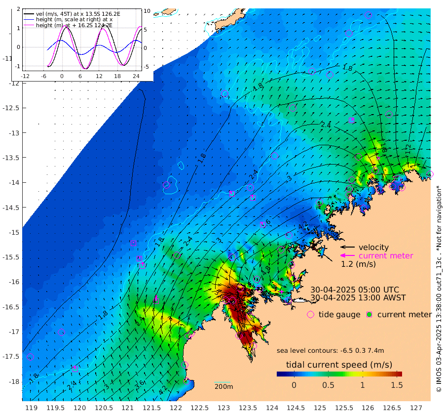 29cm/s -32T +10cm/s rms + 1cm/s 1T. NWSBRW 205m 30cm/s -16T +11cm/s rms + 6cm/s -110T. NWSROW 199m 25cm/s -20T +5cm/s rms + 2cm/s 65T. CAM050 58m 27cm/s -5T +12cm/s rms + 5cm/s 92T. CAM100 99m 9cm/s 5T +7cm/s rms + 1cm/s -85T. KIM400 396m 15cm/s 3T +9cm/s rms + 5cm/s -119T. KIM200 208m 32cm/s 0T +11cm/s rms + 5cm/s -147T. KIM100 99m 51cm/s 1T +8cm/s rms + 3cm/s -103T. KIM050 59m 23cm/s 35T +4cm/s rms + 2cm/s 23T. TIMORS88 91m 201cm Imperieuse Reef 156cm Mermaid Reef 395cm Broome 285cm Cape Baskerville 334cm Red Bluff 291cm Cape Boileau 148cm Scott Reef (WA) 193cm Ashmore Reef 411cm Karrakatta Bay 385cm Sunday Island 274cm Valentine Island 168cm Derby 295cm Port Usborne 443cm Bedford Islands 516cm Yampi Sound (Koolan Island) 533cm Macleay Island 348cm Adele Island 148cm Browse Island 618cm Shale Island 623cm Lizard Island 465cm Hall Point 442cm Degerando Island 401cm White Island 200cm Skua No. 4 Well 188cm Jabiru 338cm Maret Island 303cm Baudin Island 316cm Cape Voltaire (Krait Bay) 159cm Dillon Shoal 101cm Laminaria 359cm Port Warrender 243cm Troughton Island 295cm Cassini Island 219cm West Holothuria Reef Offshore 230cm Jar Island 244cm Lynher Bank 259cm Heywood Shoal 184cm Pee Shoal 151cm Van Cloon Shoal 151cm Carronade Island 150cm Guy Point 158cm Napier Broome Bay 51cm Lesueur Island