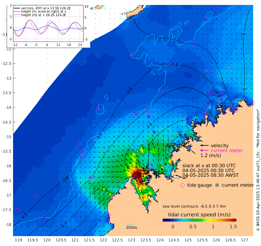 8cm/s 149T +10cm/s rms + 1cm/s 1T. NWSBRW 205m 3cm/s -151T +11cm/s rms + 6cm/s -110T. NWSROW 199m 9cm/s -32T +5cm/s rms + 2cm/s 65T. CAM050 58m 5cm/s -89T +12cm/s rms + 5cm/s 92T. CAM100 99m 3cm/s -128T +7cm/s rms + 1cm/s -85T. KIM400 396m 7cm/s -106T +9cm/s rms + 5cm/s -119T. KIM200 208m 11cm/s -114T +11cm/s rms + 5cm/s -147T. KIM100 99m 20cm/s -146T +8cm/s rms + 3cm/s -103T. KIM050 59m 13cm/s 116T +4cm/s rms + 2cm/s 23T. TIMORS88 91m -50cm Imperieuse Reef -62cm Mermaid Reef -187cm Broome -122cm Cape Baskerville -131cm Red Bluff -126cm Cape Boileau -52cm Scott Reef (WA) -54cm Ashmore Reef -135cm Karrakatta Bay -114cm Sunday Island 9cm Valentine Island 67cm Derby -25cm Port Usborne -155cm Bedford Islands -211cm Yampi Sound (Koolan Island) -208cm Macleay Island -129cm Adele Island -85cm Browse Island -249cm Shale Island -258cm Lizard Island -258cm Hall Point -183cm Degerando Island -188cm White Island -55cm Skua No. 4 Well -54cm Jabiru -137cm Maret Island -127cm Baudin Island -130cm Cape Voltaire (Krait Bay) -29cm Dillon Shoal -13cm Laminaria -148cm Port Warrender -66cm Troughton Island -103cm Cassini Island -72cm West Holothuria Reef Offshore -79cm Jar Island -98cm Lynher Bank -100cm Heywood Shoal -31cm Pee Shoal -22cm Van Cloon Shoal -43cm Carronade Island -44cm Guy Point -42cm Napier Broome Bay 22cm Lesueur Island