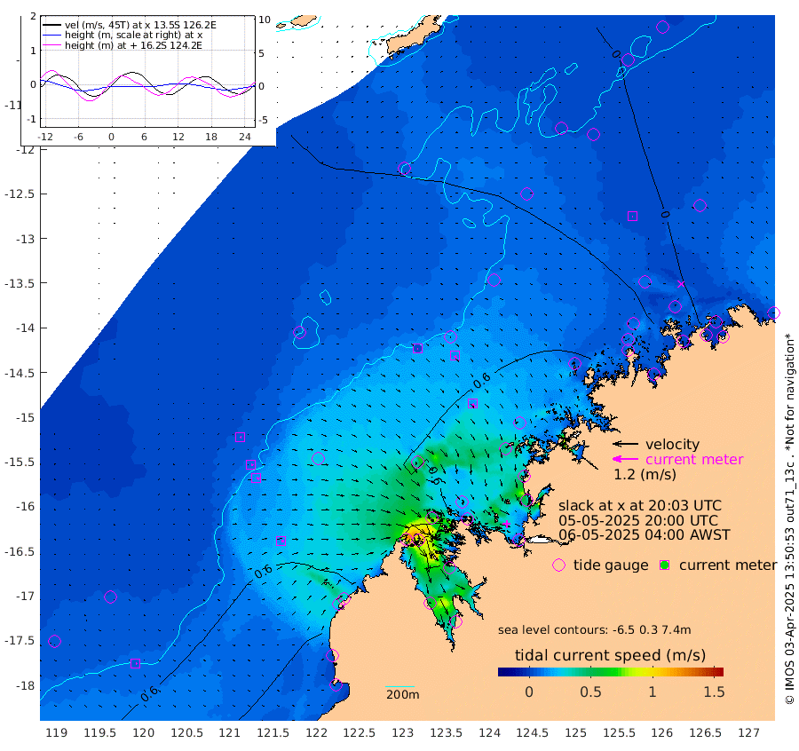 3cm/s 110T +10cm/s rms + 1cm/s 1T. NWSBRW 205m 7cm/s 123T +11cm/s rms + 6cm/s -110T. NWSROW 199m 17cm/s 146T +5cm/s rms + 2cm/s 65T. CAM050 58m 13cm/s 138T +12cm/s rms + 5cm/s 92T. CAM100 99m 5cm/s 103T +7cm/s rms + 1cm/s -85T. KIM400 396m 9cm/s 105T +9cm/s rms + 5cm/s -119T. KIM200 208m 14cm/s 117T +11cm/s rms + 5cm/s -147T. KIM100 99m 13cm/s 85T +8cm/s rms + 3cm/s -103T. KIM050 59m 1cm/s -90T +4cm/s rms + 2cm/s 23T. TIMORS88 91m -3cm Imperieuse Reef 32cm Mermaid Reef 75cm Broome 44cm Cape Baskerville 34cm Red Bluff 28cm Cape Boileau 23cm Scott Reef (WA) 16cm Ashmore Reef 23cm Karrakatta Bay 13cm Sunday Island -59cm Valentine Island -90cm Derby -34cm Port Usborne 41cm Bedford Islands 68cm Yampi Sound (Koolan Island) 71cm Macleay Island 44cm Adele Island 42cm Browse Island 82cm Shale Island 93cm Lizard Island 138cm Hall Point 55cm Degerando Island 74cm White Island 13cm Skua No. 4 Well 7cm Jabiru 48cm Maret Island 45cm Baudin Island 38cm Cape Voltaire (Krait Bay) -11cm Dillon Shoal 18cm Laminaria 35cm Port Warrender 2cm Troughton Island 22cm Cassini Island 16cm West Holothuria Reef Offshore 9cm Jar Island 42cm Lynher Bank 29cm Heywood Shoal -3cm Pee Shoal -20cm Van Cloon Shoal -8cm Carronade Island -7cm Guy Point -20cm Napier Broome Bay -43cm Lesueur Island