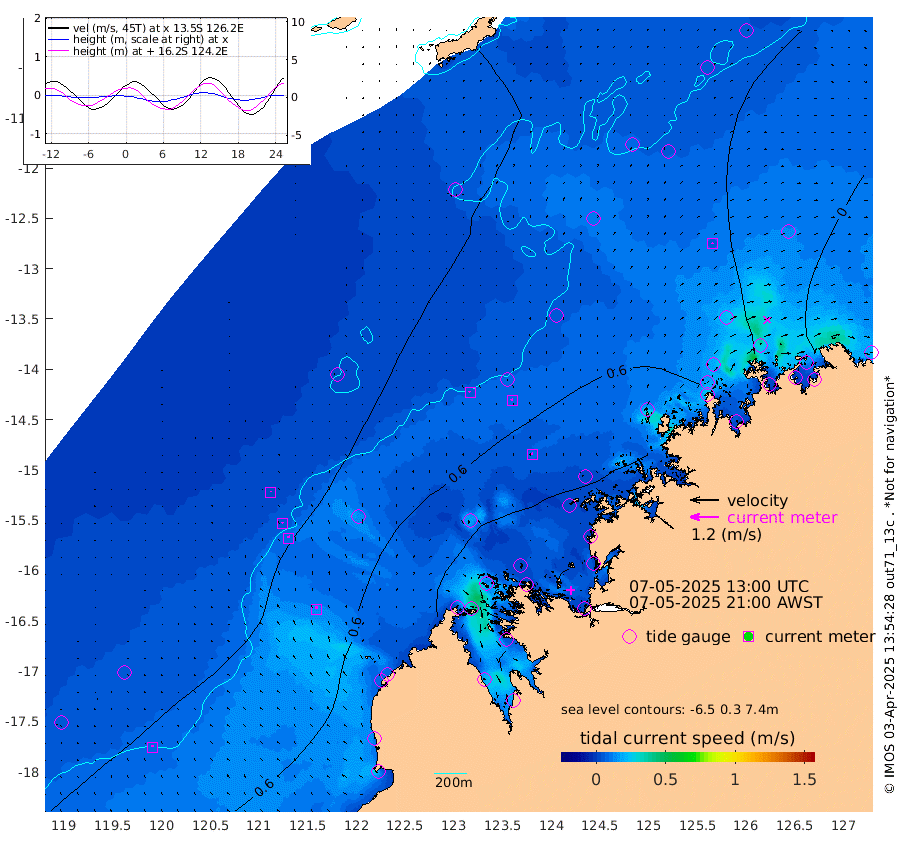 7cm/s -28T +10cm/s rms + 1cm/s 1T. NWSBRW 205m 9cm/s -20T +11cm/s rms + 6cm/s -110T. NWSROW 199m 8cm/s -17T +5cm/s rms + 2cm/s 65T. CAM050 58m 8cm/s -22T +12cm/s rms + 5cm/s 92T. CAM100 99m 3cm/s -7T +7cm/s rms + 1cm/s -85T. KIM400 396m 4cm/s -12T +9cm/s rms + 5cm/s -119T. KIM200 208m 10cm/s -12T +11cm/s rms + 5cm/s -147T. KIM100 99m 14cm/s -1T +8cm/s rms + 3cm/s -103T. KIM050 59m 5cm/s 22T +4cm/s rms + 2cm/s 23T. TIMORS88 91m 43cm Imperieuse Reef 28cm Mermaid Reef 87cm Broome 69cm Cape Baskerville 81cm Red Bluff 75cm Cape Boileau 33cm Scott Reef (WA) 34cm Ashmore Reef 112cm Karrakatta Bay 118cm Sunday Island 108cm Valentine Island 84cm Derby 105cm Port Usborne 127cm Bedford Islands 123cm Yampi Sound (Koolan Island) 169cm Macleay Island 97cm Adele Island 28cm Browse Island 144cm Shale Island 118cm Lizard Island 33cm Hall Point 105cm Degerando Island 83cm White Island 45cm Skua No. 4 Well 22cm Jabiru 69cm Maret Island 56cm Baudin Island 57cm Cape Voltaire (Krait Bay) 41cm Dillon Shoal 13cm Laminaria 68cm Port Warrender 32cm Troughton Island 56cm Cassini Island 36cm West Holothuria Reef Offshore 20cm Jar Island 49cm Lynher Bank 57cm Heywood Shoal 40cm Pee Shoal 14cm Van Cloon Shoal -3cm Carronade Island 4cm Guy Point 0cm Napier Broome Bay -51cm Lesueur Island