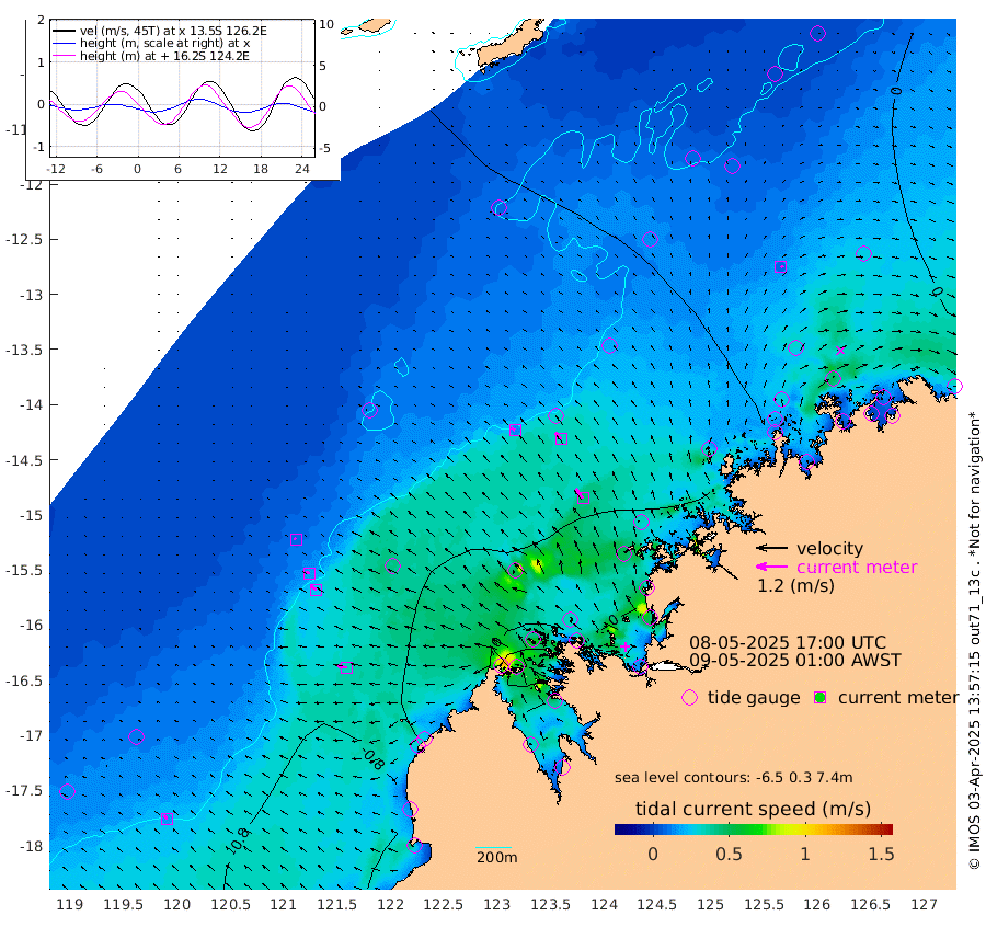 15cm/s -54T +10cm/s rms + 1cm/s 1T. NWSBRW 205m 18cm/s -52T +11cm/s rms + 6cm/s -110T. NWSROW 199m 46cm/s -38T +5cm/s rms + 2cm/s 65T. CAM050 58m 33cm/s -40T +12cm/s rms + 5cm/s 92T. CAM100 99m 8cm/s -70T +7cm/s rms + 1cm/s -85T. KIM400 396m 15cm/s -62T +9cm/s rms + 5cm/s -119T. KIM200 208m 26cm/s -57T +11cm/s rms + 5cm/s -147T. KIM100 99m 34cm/s -77T +8cm/s rms + 3cm/s -103T. KIM050 59m 9cm/s 59T +4cm/s rms + 2cm/s 23T. TIMORS88 91m 5cm Imperieuse Reef -61cm Mermaid Reef -105cm Broome -79cm Cape Baskerville -50cm Red Bluff -80cm Cape Boileau -60cm Scott Reef (WA) -48cm Ashmore Reef 2cm Karrakatta Bay 14cm Sunday Island 122cm Valentine Island 171cm Derby 109cm Port Usborne -22cm Bedford Islands -48cm Yampi Sound (Koolan Island) -90cm Macleay Island -76cm Adele Island -107cm Browse Island -23cm Shale Island -68cm Lizard Island -83cm Hall Point -63cm Degerando Island -91cm White Island -58cm Skua No. 4 Well -43cm Jabiru -88cm Maret Island -75cm Baudin Island -81cm Cape Voltaire (Krait Bay) -25cm Dillon Shoal -52cm Laminaria -81cm Port Warrender -58cm Troughton Island -78cm Cassini Island -70cm West Holothuria Reef Offshore -53cm Jar Island -66cm Lynher Bank -72cm Heywood Shoal -47cm Pee Shoal -37cm Van Cloon Shoal -55cm Carronade Island -56cm Guy Point -62cm Napier Broome Bay -24cm Lesueur Island