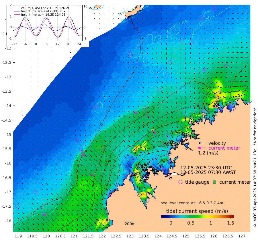 39cm/s 130T +10cm/s rms + 1cm/s 1T. NWSBRW 205m 40cm/s 143T +11cm/s rms + 6cm/s -110T. NWSROW 199m 77cm/s 144T +5cm/s rms + 2cm/s 65T. CAM050 58m 60cm/s 143T +12cm/s rms + 5cm/s 92T. CAM100 99m 11cm/s 131T +7cm/s rms + 1cm/s -85T. KIM400 396m 25cm/s 130T +9cm/s rms + 5cm/s -119T. KIM200 208m 50cm/s 138T +11cm/s rms + 5cm/s -147T. KIM100 99m 56cm/s 125T +8cm/s rms + 3cm/s -103T. KIM050 59m 23cm/s -147T +4cm/s rms + 2cm/s 23T. TIMORS88 91m -77cm Imperieuse Reef 26cm Mermaid Reef -46cm Broome -12cm Cape Baskerville -96cm Red Bluff -25cm Cape Boileau 25cm Scott Reef (WA) 4cm Ashmore Reef -190cm Karrakatta Bay -206cm Sunday Island -320cm Valentine Island -315cm Derby -297cm Port Usborne -169cm Bedford Islands -194cm Yampi Sound (Koolan Island) -183cm Macleay Island -74cm Adele Island 69cm Browse Island -281cm Shale Island -287cm Lizard Island -225cm Hall Point -123cm Degerando Island -86cm White Island 14cm Skua No. 4 Well -14cm Jabiru -26cm Maret Island -10cm Baudin Island -16cm Cape Voltaire (Krait Bay) -4cm Dillon Shoal 55cm Laminaria -50cm Port Warrender 17cm Troughton Island 3cm Cassini Island 17cm West Holothuria Reef Offshore 6cm Jar Island -19cm Lynher Bank 4cm Heywood Shoal 8cm Pee Shoal 21cm Van Cloon Shoal 50cm Carronade Island 57cm Guy Point 49cm Napier Broome Bay 105cm Lesueur Island