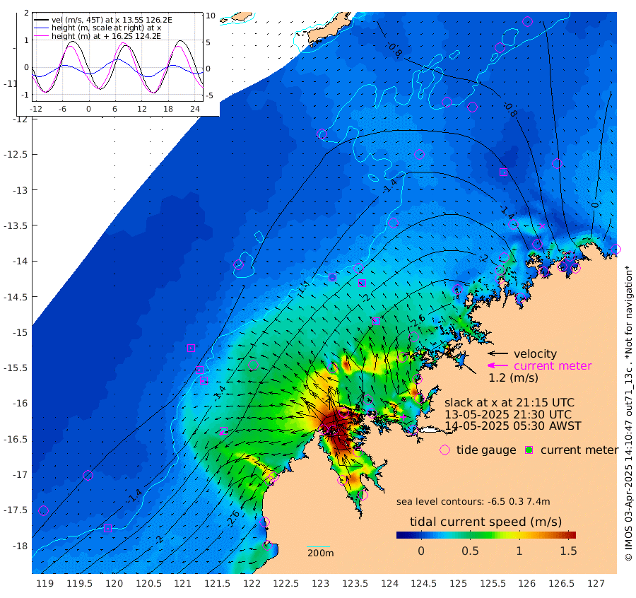 7cm/s 168T +10cm/s rms + 1cm/s 1T. NWSBRW 205m 7cm/s -154T +11cm/s rms + 6cm/s -110T. NWSROW 199m 21cm/s -44T +5cm/s rms + 2cm/s 65T. CAM050 58m 13cm/s -74T +12cm/s rms + 5cm/s 92T. CAM100 99m 5cm/s -125T +7cm/s rms + 1cm/s -85T. KIM400 396m 10cm/s -109T +9cm/s rms + 5cm/s -119T. KIM200 208m 17cm/s -120T +11cm/s rms + 5cm/s -147T. KIM100 99m 34cm/s -138T +8cm/s rms + 3cm/s -103T. KIM050 59m 8cm/s 102T +4cm/s rms + 2cm/s 23T. TIMORS88 91m -81cm Imperieuse Reef -101cm Mermaid Reef -300cm Broome -206cm Cape Baskerville -251cm Red Bluff -213cm Cape Boileau -90cm Scott Reef (WA) -107cm Ashmore Reef -227cm Karrakatta Bay -188cm Sunday Island 12cm Valentine Island 101cm Derby -31cm Port Usborne -253cm Bedford Islands -325cm Yampi Sound (Koolan Island) -355cm Macleay Island -234cm Adele Island -143cm Browse Island -368cm Shale Island -358cm Lizard Island -359cm Hall Point -292cm Degerando Island -284cm White Island -111cm Skua No. 4 Well -88cm Jabiru -233cm Maret Island -209cm Baudin Island -211cm Cape Voltaire (Krait Bay) -68cm Dillon Shoal -35cm Laminaria -231cm Port Warrender -117cm Troughton Island -194cm Cassini Island -133cm West Holothuria Reef Offshore -125cm Jar Island -151cm Lynher Bank -170cm Heywood Shoal -83cm Pee Shoal -56cm Van Cloon Shoal -67cm Carronade Island -61cm Guy Point -72cm Napier Broome Bay 50cm Lesueur Island
