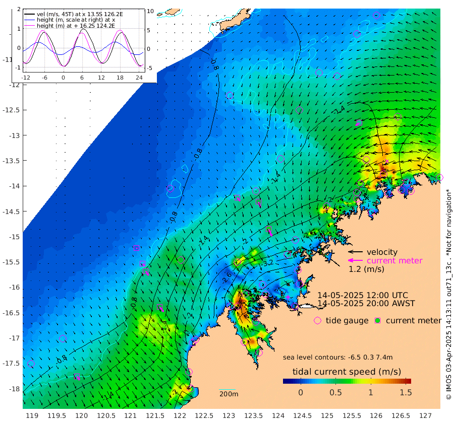38cm/s 138T +10cm/s rms + 1cm/s 1T. NWSBRW 205m 38cm/s 148T +11cm/s rms + 6cm/s -110T. NWSROW 199m 68cm/s 154T +5cm/s rms + 2cm/s 65T. CAM050 58m 52cm/s 157T +12cm/s rms + 5cm/s 92T. CAM100 99m 10cm/s 150T +7cm/s rms + 1cm/s -85T. KIM400 396m 23cm/s 142T +9cm/s rms + 5cm/s -119T. KIM200 208m 44cm/s 149T +11cm/s rms + 5cm/s -147T. KIM100 99m 52cm/s 141T +8cm/s rms + 3cm/s -103T. KIM050 59m 39cm/s -126T +4cm/s rms + 2cm/s 23T. TIMORS88 91m -150cm Imperieuse Reef -62cm Mermaid Reef -154cm Broome -118cm Cape Baskerville -197cm Red Bluff -114cm Cape Boileau -56cm Scott Reef (WA) -105cm Ashmore Reef -299cm Karrakatta Bay -307cm Sunday Island -400cm Valentine Island -363cm Derby -360cm Port Usborne -274cm Bedford Islands -311cm Yampi Sound (Koolan Island) -301cm Macleay Island -183cm Adele Island 10cm Browse Island -409cm Shale Island -390cm Lizard Island -369cm Hall Point -230cm Degerando Island -200cm White Island -93cm Skua No. 4 Well -122cm Jabiru -146cm Maret Island -145cm Baudin Island -132cm Cape Voltaire (Krait Bay) -110cm Dillon Shoal -58cm Laminaria -177cm Port Warrender -128cm Troughton Island -126cm Cassini Island -108cm West Holothuria Reef Offshore -120cm Jar Island -113cm Lynher Bank -111cm Heywood Shoal -106cm Pee Shoal -96cm Van Cloon Shoal -71cm Carronade Island -72cm Guy Point -69cm Napier Broome Bay -41cm Lesueur Island