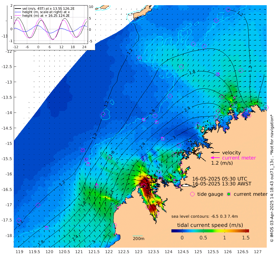 24cm/s -35T +10cm/s rms + 1cm/s 1T. NWSBRW 205m 24cm/s -19T +11cm/s rms + 6cm/s -110T. NWSROW 199m 24cm/s -29T +5cm/s rms + 2cm/s 65T. CAM050 58m 22cm/s -11T +12cm/s rms + 5cm/s 92T. CAM100 99m 7cm/s -3T +7cm/s rms + 1cm/s -85T. KIM400 396m 11cm/s -8T +9cm/s rms + 5cm/s -119T. KIM200 208m 24cm/s -9T +11cm/s rms + 5cm/s -147T. KIM100 99m 38cm/s -5T +8cm/s rms + 3cm/s -103T. KIM050 59m 20cm/s 30T +4cm/s rms + 2cm/s 23T. TIMORS88 91m 153cm Imperieuse Reef 110cm Mermaid Reef 284cm Broome 209cm Cape Baskerville 266cm Red Bluff 214cm Cape Boileau 100cm Scott Reef (WA) 145cm Ashmore Reef 323cm Karrakatta Bay 290cm Sunday Island 228cm Valentine Island 146cm Derby 227cm Port Usborne 311cm Bedford Islands 383cm Yampi Sound (Koolan Island) 388cm Macleay Island 252cm Adele Island 100cm Browse Island 469cm Shale Island 457cm Lizard Island 448cm Hall Point 321cm Degerando Island 299cm White Island 143cm Skua No. 4 Well 157cm Jabiru 246cm Maret Island 238cm Baudin Island 229cm Cape Voltaire (Krait Bay) 126cm Dillon Shoal 69cm Laminaria 267cm Port Warrender 189cm Troughton Island 220cm Cassini Island 171cm West Holothuria Reef Offshore 186cm Jar Island 168cm Lynher Bank 185cm Heywood Shoal 134cm Pee Shoal 125cm Van Cloon Shoal 125cm Carronade Island 122cm Guy Point 132cm Napier Broome Bay 61cm Lesueur Island