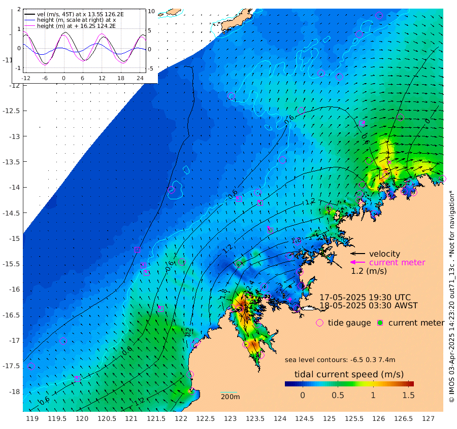 19cm/s -43T +10cm/s rms + 1cm/s 1T. NWSBRW 205m 26cm/s -32T +11cm/s rms + 6cm/s -110T. NWSROW 199m 43cm/s -28T +5cm/s rms + 2cm/s 65T. CAM050 58m 31cm/s -24T +12cm/s rms + 5cm/s 92T. CAM100 99m 6cm/s -23T +7cm/s rms + 1cm/s -85T. KIM400 396m 14cm/s -32T +9cm/s rms + 5cm/s -119T. KIM200 208m 27cm/s -32T +11cm/s rms + 5cm/s -147T. KIM100 99m 32cm/s -35T +8cm/s rms + 3cm/s -103T. KIM050 59m 30cm/s 57T +4cm/s rms + 2cm/s 23T. TIMORS88 91m 74cm Imperieuse Reef 22cm Mermaid Reef 93cm Broome 51cm Cape Baskerville 115cm Red Bluff 39cm Cape Boileau 15cm Scott Reef (WA) 42cm Ashmore Reef 191cm Karrakatta Bay 189cm Sunday Island 223cm Valentine Island 214cm Derby 234cm Port Usborne 170cm Bedford Islands 203cm Yampi Sound (Koolan Island) 210cm Macleay Island 109cm Adele Island -24cm Browse Island 289cm Shale Island 267cm Lizard Island 259cm Hall Point 137cm Degerando Island 114cm White Island 33cm Skua No. 4 Well 39cm Jabiru 69cm Maret Island 58cm Baudin Island 48cm Cape Voltaire (Krait Bay) 34cm Dillon Shoal 17cm Laminaria 51cm Port Warrender 11cm Troughton Island 40cm Cassini Island 20cm West Holothuria Reef Offshore 14cm Jar Island 52cm Lynher Bank 40cm Heywood Shoal 28cm Pee Shoal -7cm Van Cloon Shoal -36cm Carronade Island -41cm Guy Point -44cm Napier Broome Bay -101cm Lesueur Island