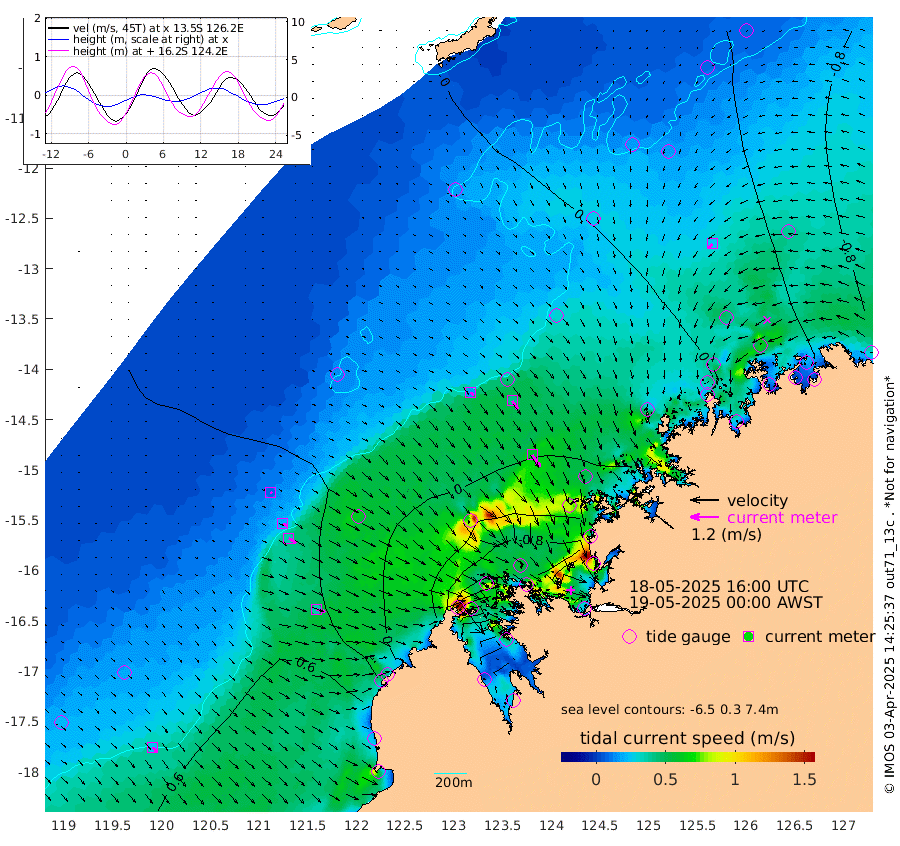 17cm/s 119T +10cm/s rms + 1cm/s 1T. NWSBRW 205m 25cm/s 138T +11cm/s rms + 6cm/s -110T. NWSROW 199m 60cm/s 146T +5cm/s rms + 2cm/s 65T. CAM050 58m 42cm/s 145T +12cm/s rms + 5cm/s 92T. CAM100 99m 9cm/s 122T +7cm/s rms + 1cm/s -85T. KIM400 396m 20cm/s 118T +9cm/s rms + 5cm/s -119T. KIM200 208m 36cm/s 126T +11cm/s rms + 5cm/s -147T. KIM100 99m 38cm/s 106T +8cm/s rms + 3cm/s -103T. KIM050 59m 26cm/s -131T +4cm/s rms + 2cm/s 23T. TIMORS88 91m -51cm Imperieuse Reef 32cm Mermaid Reef 97cm Broome 66cm Cape Baskerville 36cm Red Bluff 54cm Cape Boileau 22cm Scott Reef (WA) 0cm Ashmore Reef -55cm Karrakatta Bay -86cm Sunday Island -306cm Valentine Island -348cm Derby -247cm Port Usborne 1cm Bedford Islands 2cm Yampi Sound (Koolan Island) -6cm Macleay Island 16cm Adele Island 86cm Browse Island -35cm Shale Island -58cm Lizard Island -6cm Hall Point 37cm Degerando Island 49cm White Island 4cm Skua No. 4 Well -29cm Jabiru 55cm Maret Island 53cm Baudin Island 45cm Cape Voltaire (Krait Bay) -42cm Dillon Shoal -4cm Laminaria 26cm Port Warrender -17cm Troughton Island 34cm Cassini Island 5cm West Holothuria Reef Offshore -5cm Jar Island 31cm Lynher Bank 37cm Heywood Shoal -27cm Pee Shoal -40cm Van Cloon Shoal -14cm Carronade Island -14cm Guy Point -22cm Napier Broome Bay -54cm Lesueur Island